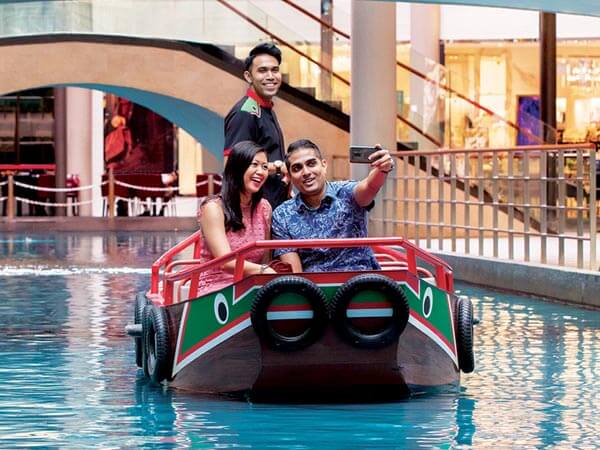 Take a leisurely ride along the Canal at The Shoppes at Marina Bay Sands in a beautifully crafted Chinese wooden boat.