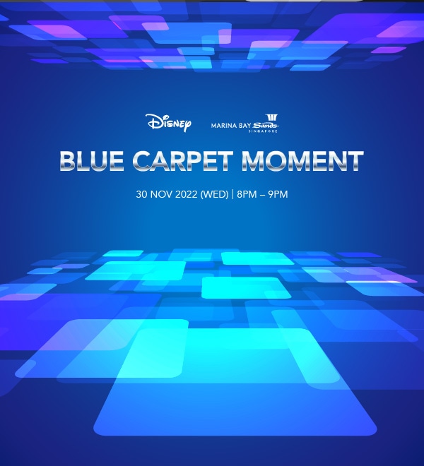On 30 Nov, 8pm, Marina Bay Sands and The Walt Disney Company will hold a blue carpet moment at The Shoppes (public observation point: opposite Sands Theatre).