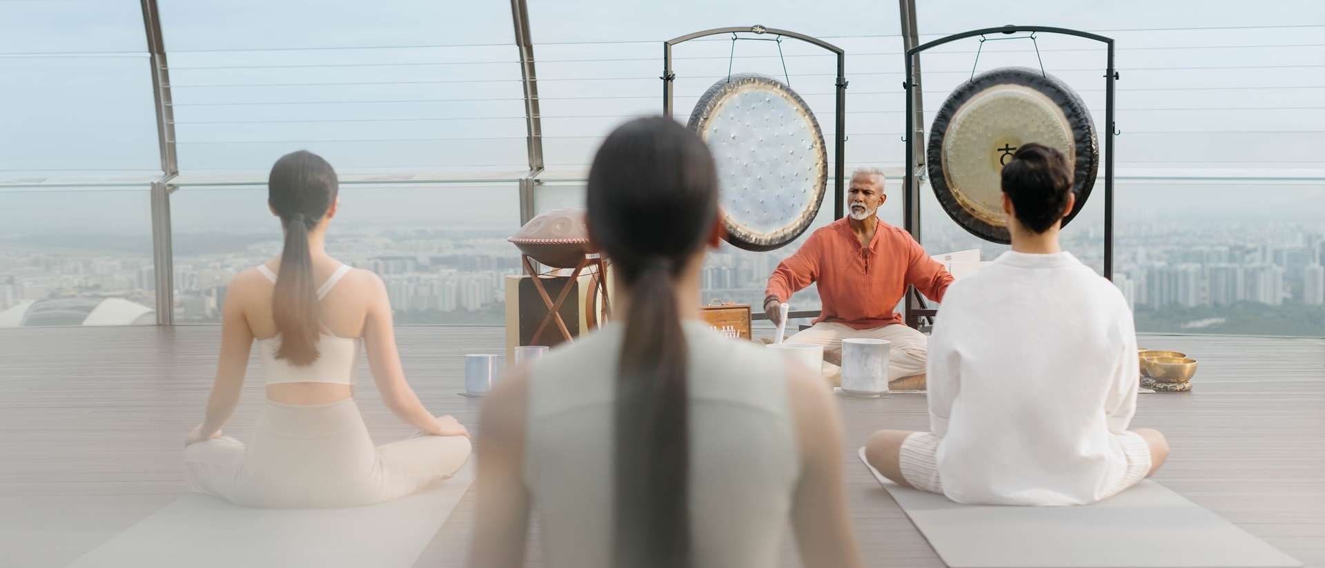 Held 56 storeys above the city at Sands SkyPark, our wellness classes are also some of Singapore’s highest, offering awe-inspiring views with every session.