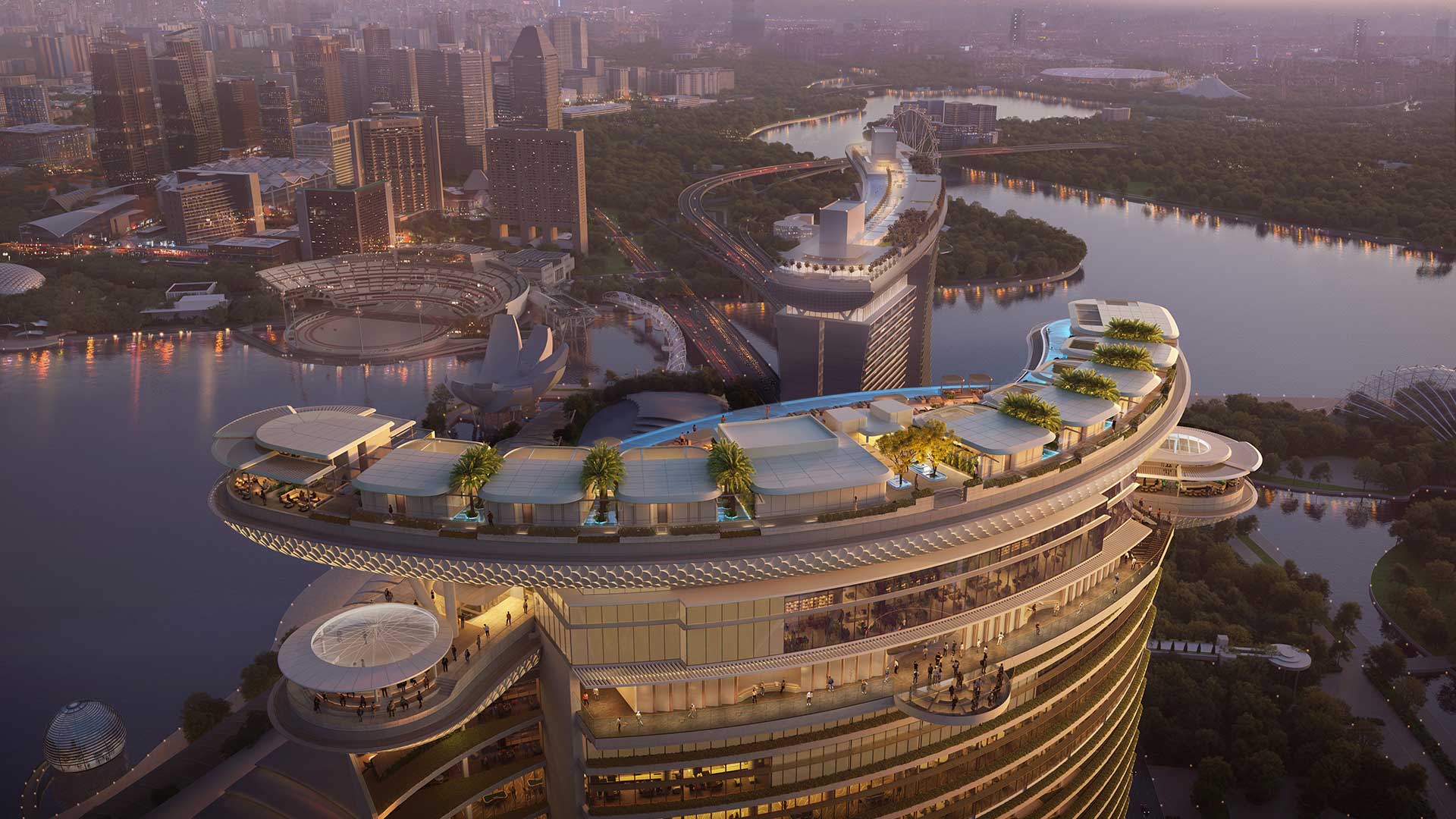 The pioneering project will feature a soaring 570-suite luxury hotel tower capped with signature rooftop and dining experiences, luxury retail boutiques, gaming, holistic spa and wellness amenities, and approximately 200,000 square feet of premium meeting space. A purpose-built 15,000-seat arena situated against the stunning backdrop of Marina Bay aims to enhance the live entertainment scene in Asia.