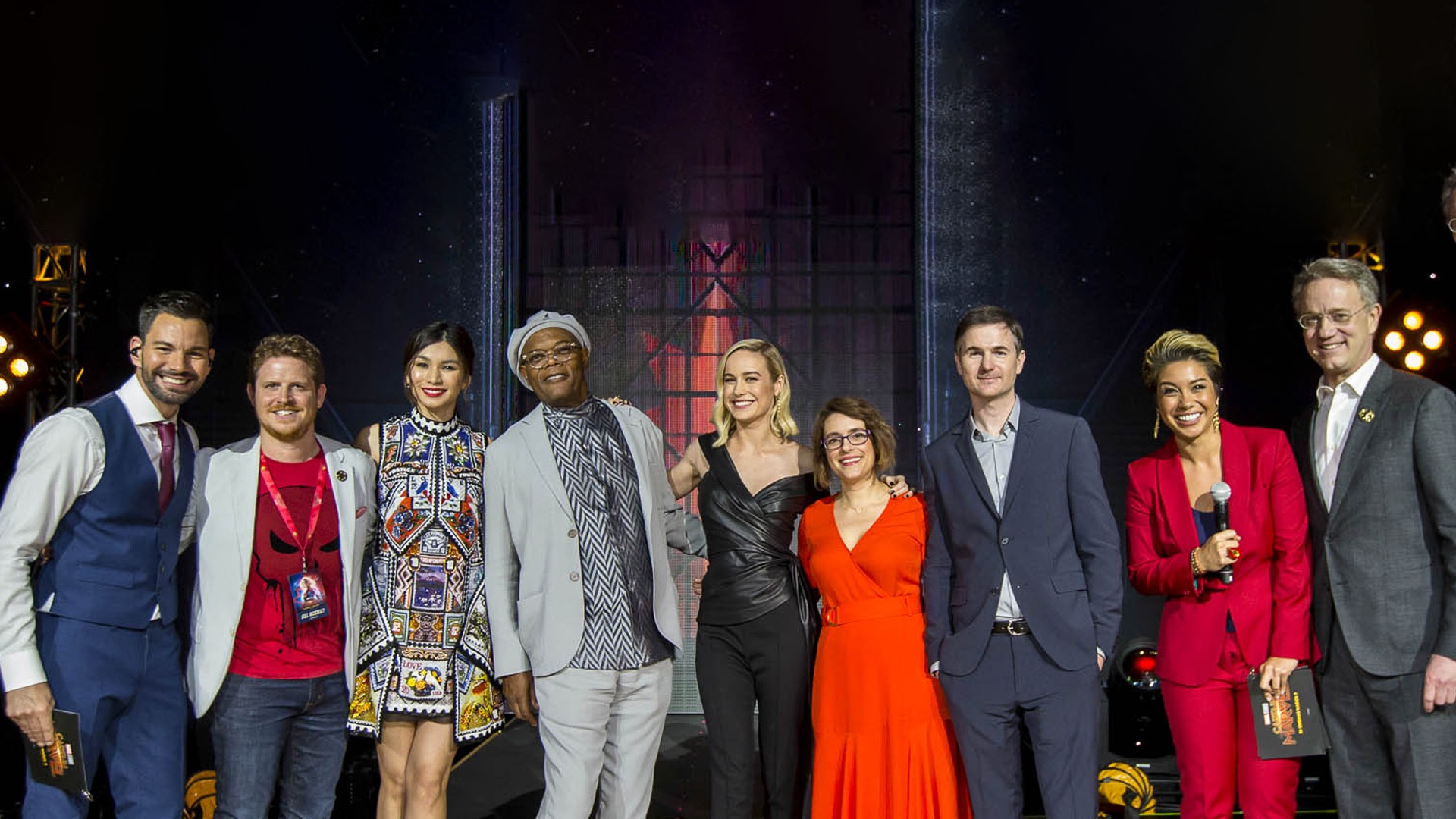 Actors Brie Larson (Carol Danvers/Captain Marvel), Samuel L. Jackson (Nick Fury), and Gemma Chan (Minn-Erva), along with the film’s directors Anna Boden and Ryan Fleck were given a rousing welcome by the fans at the award-winning Sands Expo and Convention Centre.
