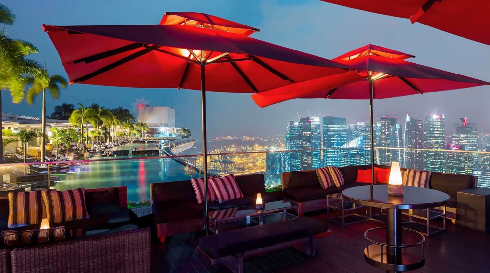 Rising 57 storeys above ground, these rooftop bars and restaurants offer prime views of the New Year’s Eve fireworks display and the city at first dawn, illuminated by glittering cascades of fireworks.