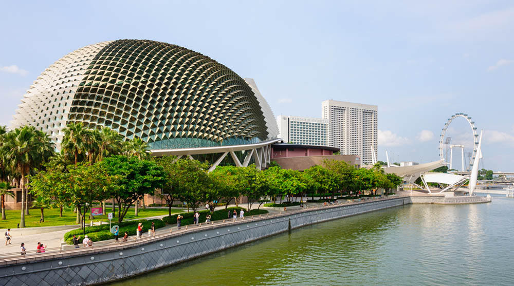 At the other end of The Float is the Esplanade, affectionately dubbed "The Durian" by locals due to its distinctive design resembling the famous tropical fruit. The stylish structure – housing concert halls and art spaces – is one of the best places to take photos in Singapore, along with captivating views of the city's skyline in the background.