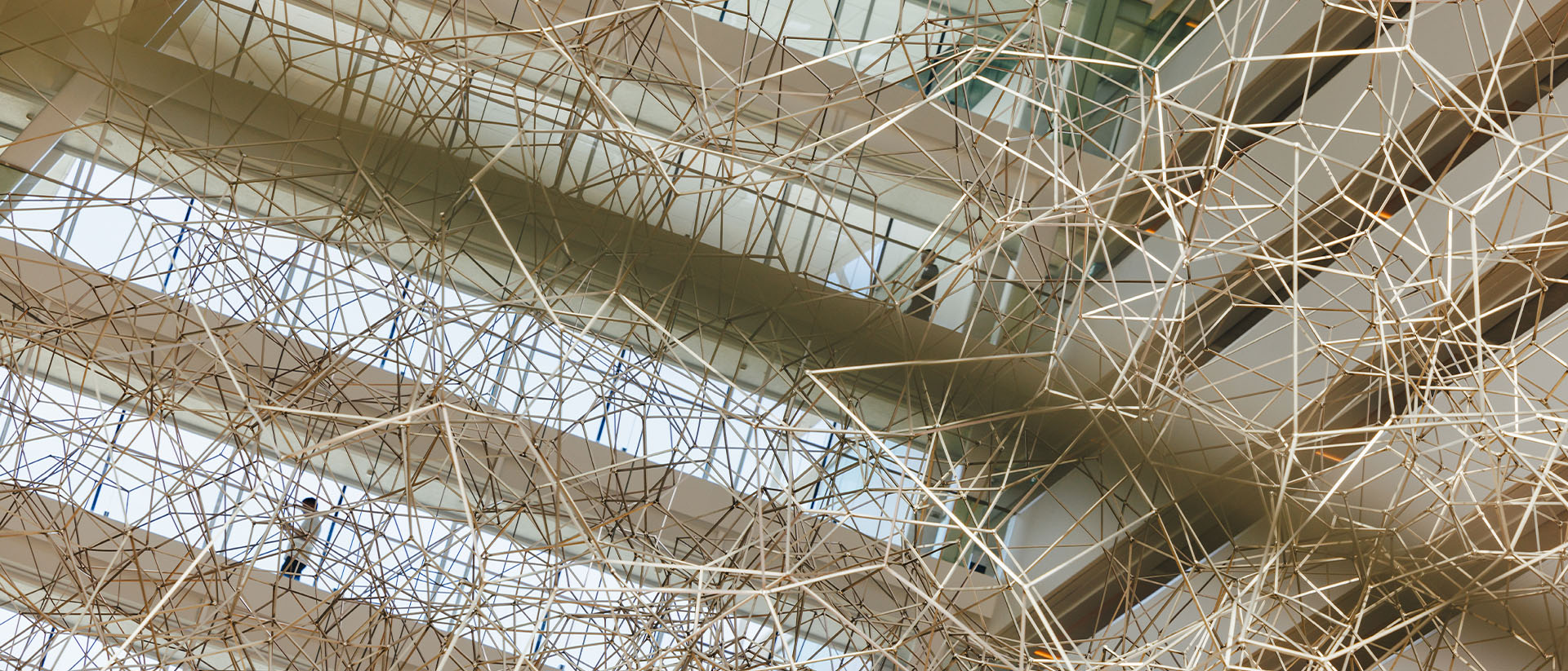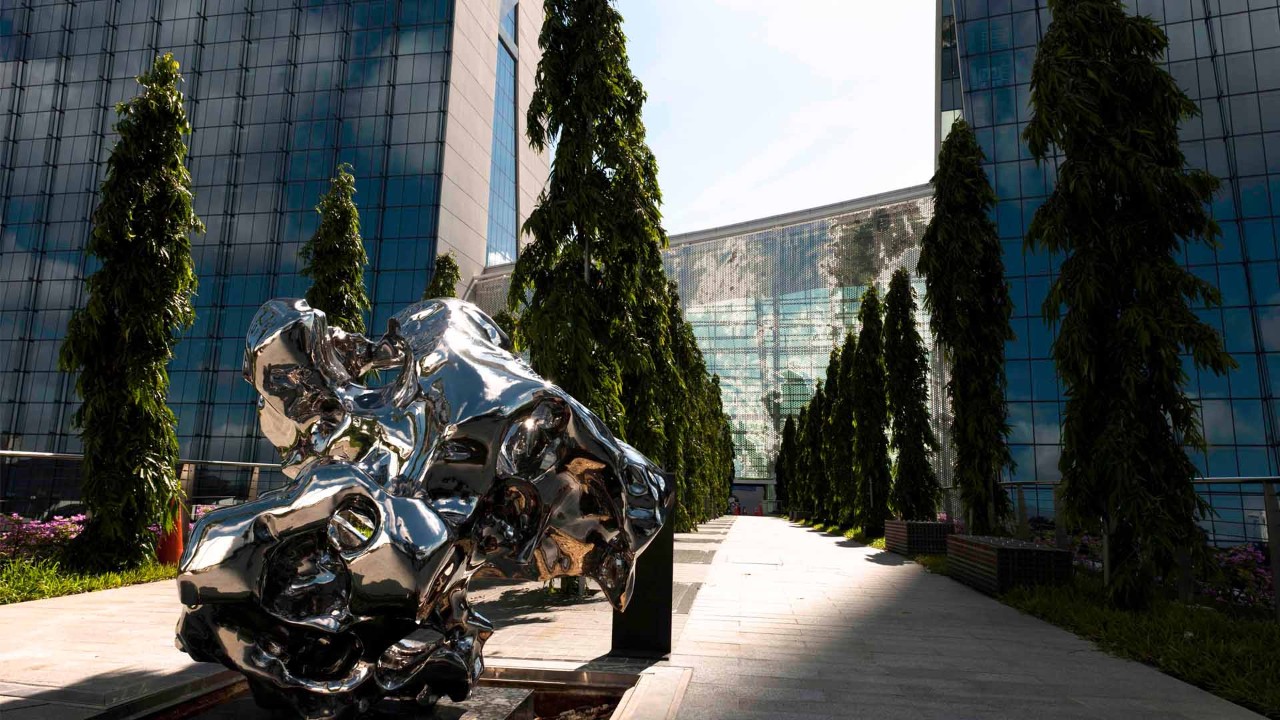 Within Hotel Tower 1, make your way to the Lions Bridge overlooking the Hotel Lobby, and observe the abstract sculpture of Artificial Rock #71 and #86. The sculpture is inspired by Chinese gongshi, which are naturally occurring rocks that scholars appreciate for their beauty. These rocks capture changes in their surroundings on their reflective surfaces, embodying the fluidity of their environment.