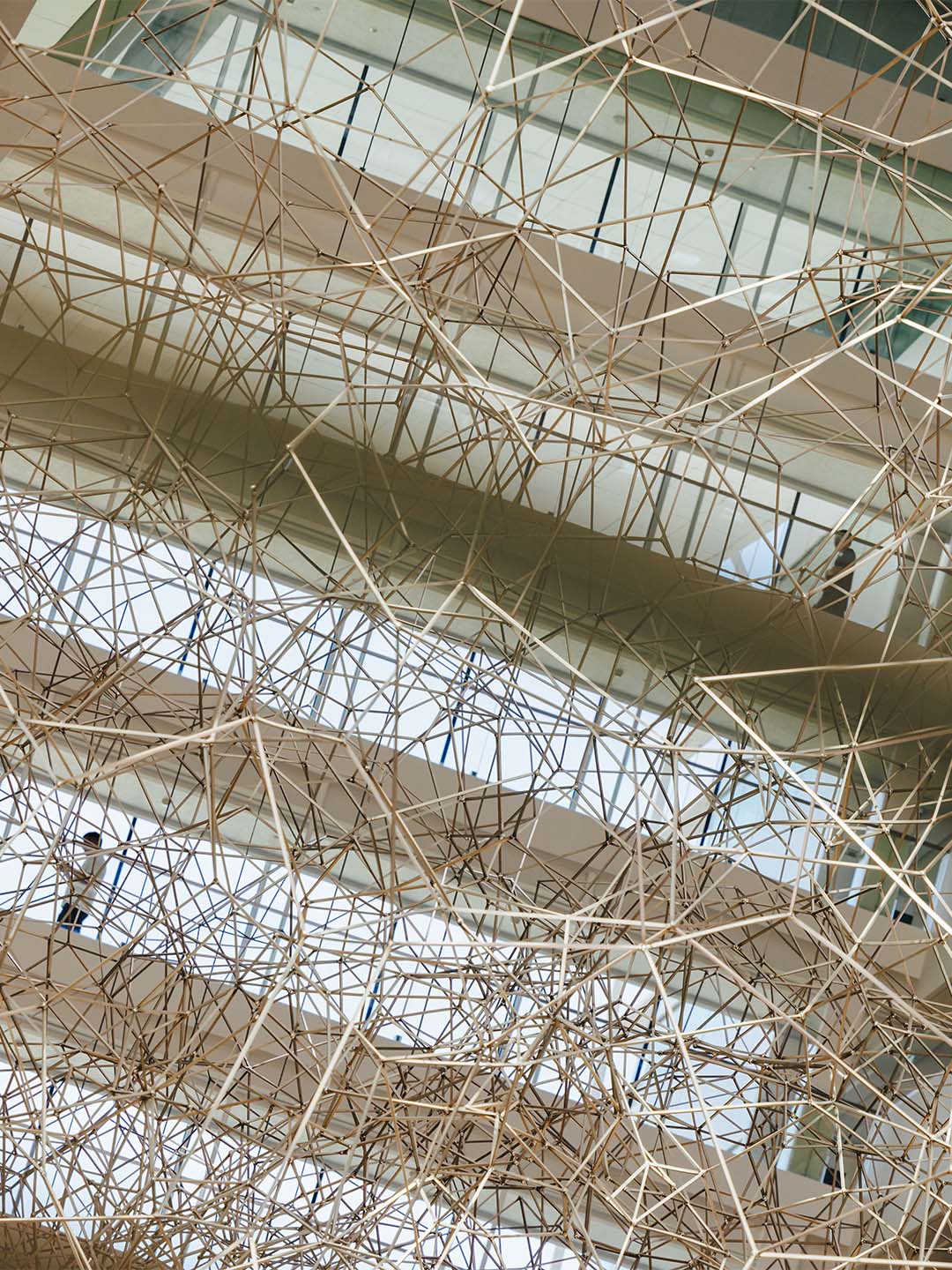 Comprising 83 larger-than-life stoneware vessels, Rising Forest lines the interior and exterior of the Hotel Atrium. At a height of 3 metres, each ceramic vessel took 15-20 days to craft and required a specially built kiln for the firing process. With every vessel containing a tree, the overall effect is a “canopy” that looms over visitors as they navigate the Hotel Atrium.