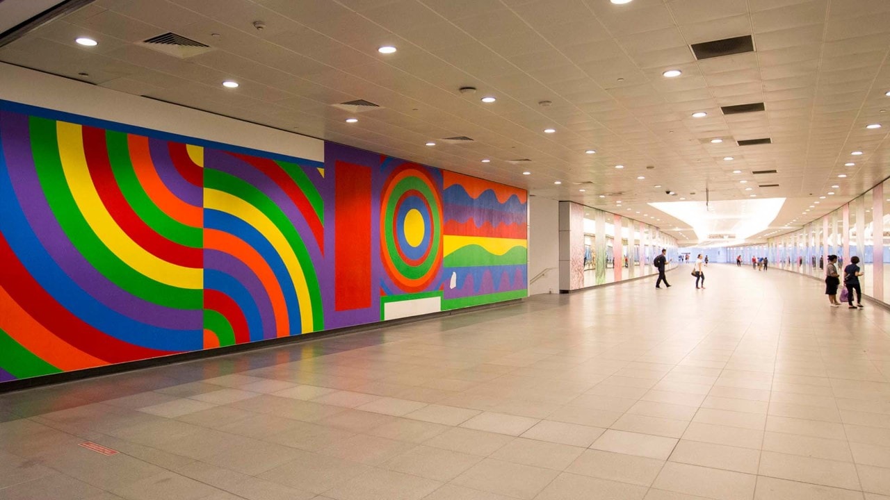 Conclude your Art Path at Marina Bay Sands at Wall Drawing #915, Arcs and Circles, located conveniently beside Bayfront MRT Station. This wall art installation challenges longstanding ideas about art, assuming similar themes and ideas to Wall Drawing #917, Arcs and Circles. The bold and striking artwork uses acrylic paint as its medium, and was created with a group of artists selected by the Singapore Tyler Print Institute.