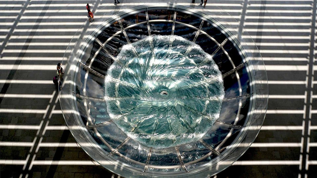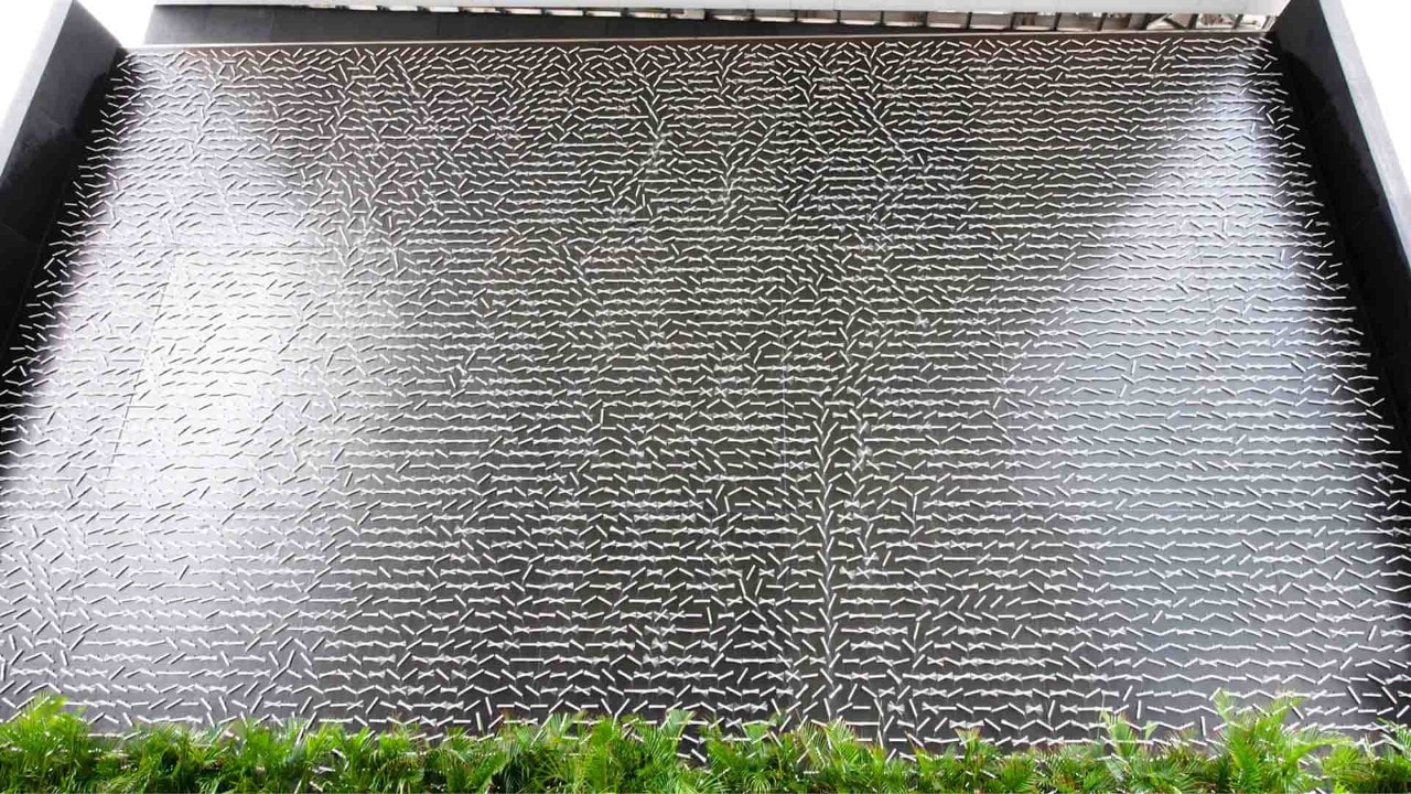 From the Sky Mirror, take a short walk towards the Hotel Tower 3. The Tipping Wall art installation is designed by environmental artist Ned Kahn, who specialises in creating interactive and kinetic structures that engage closely with natural elements. With over 7,000 hinged metal channels that tilt left and right when collected rainwater flows through, the eye-catching installation runs down to a catchment area underneath and is reused to continue the captivating spectacle of motion.