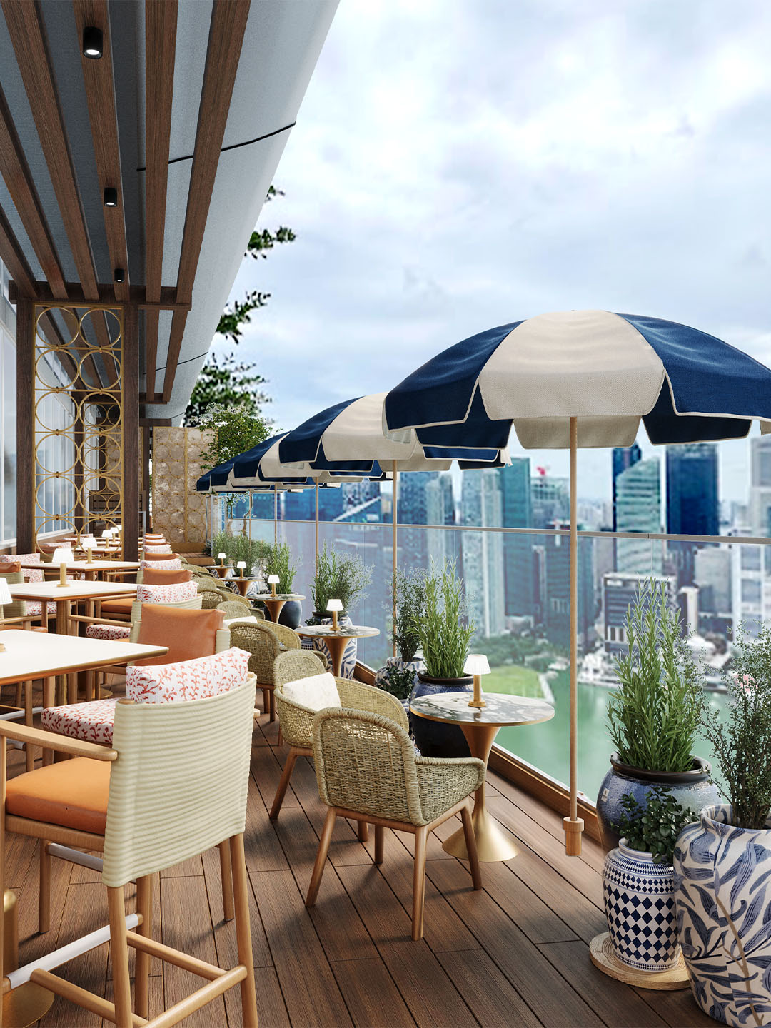 Just down the deck is CÉ LA VI, set against uninterrupted, 360-degree views of the city skyline and Singapore Strait.