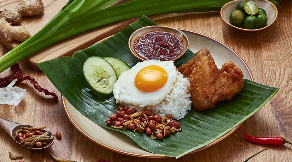 Served traditionally on a banana leaf, it is adorned with crispy fried fish or succulent chicken, crunchy ikan bilis (anchovies), roasted peanuts, fresh cucumber slices, a perfectly cooked sunny-side-up or hard-boiled egg, all crowned with sambal – a fiery yet flavourful chilli paste enriched with shallots, dried chilies, garlic, and belacan (shrimp paste). The result is a plate that satisfies every taste bud.