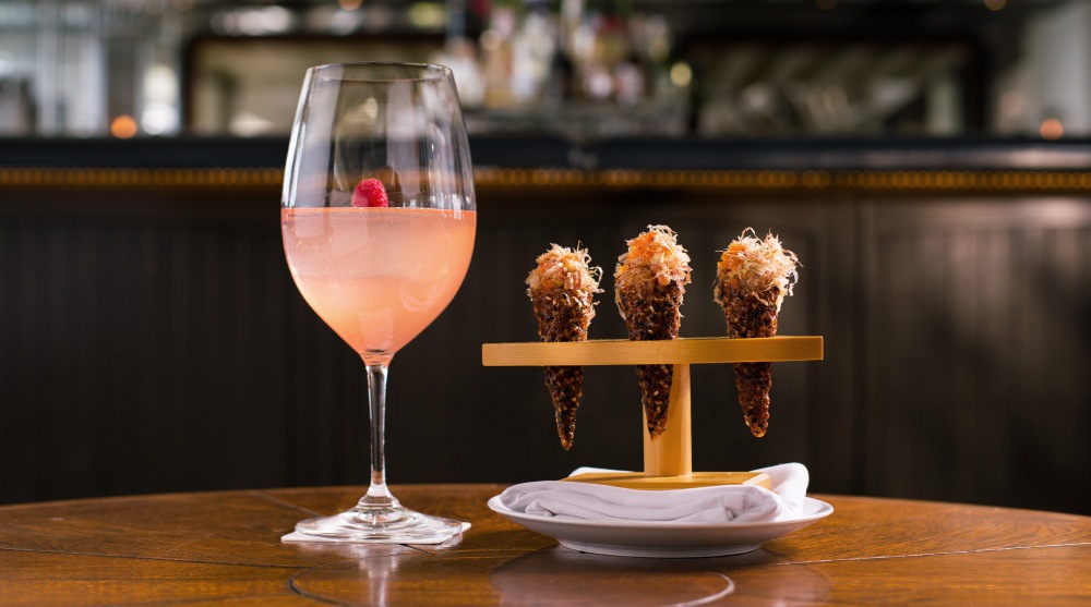 You’ll be dazzled by the alluring view of the iconic Marina Bay Sands Infinity Pool, but the spicy kick of the Big Eye Tuna Tartare Cones is what truly draws your attention. A flavourful mix of chilli aioli, wasabi and pickled ginger is balanced with savoury notes of soy and melt-in-your-mouth masago.