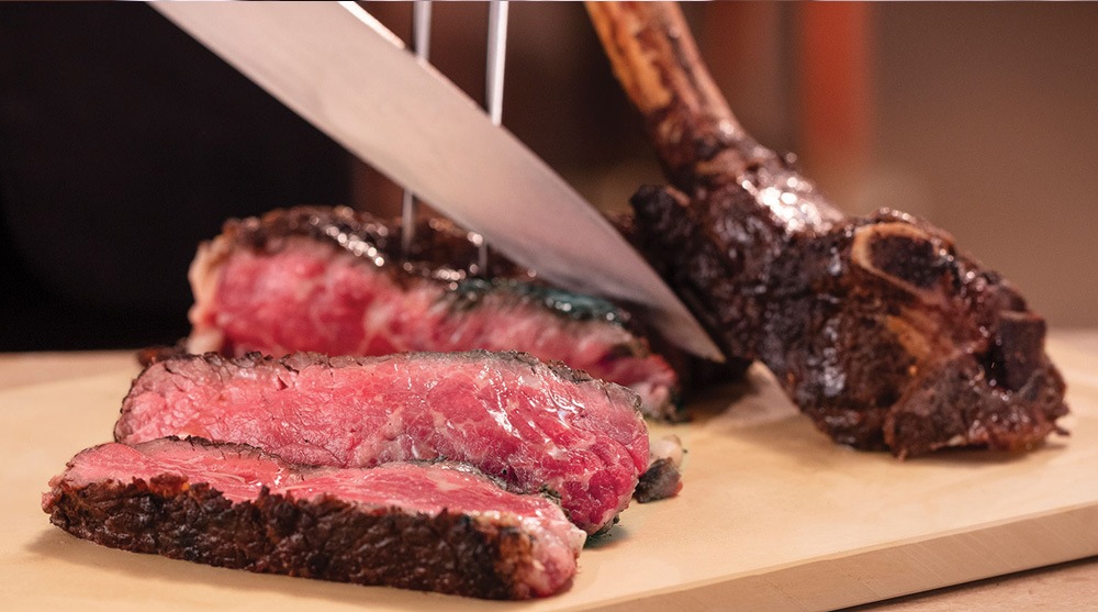 At the best steakhouse in Singapore, , you’ll be spoilt for choice with a selection of top-tier meats, including the Kagoshima Craft, New York Sirloin. This handsome cut is Japanese Pure Breed Wagyu – beautifully marbled and exceptionally delicious – perfectly grilled over Binchotan charcoal and a sure stunner on any social media feed. Pair your cut with a Rough Love cocktail. A single fresh raspberry sits atop a chunk of ice in a large wine goblet filled with Champagne, shiso-flavoured umeshu, Tanqueray No.10 Gin and peach bitters for a complex and fruity punch.