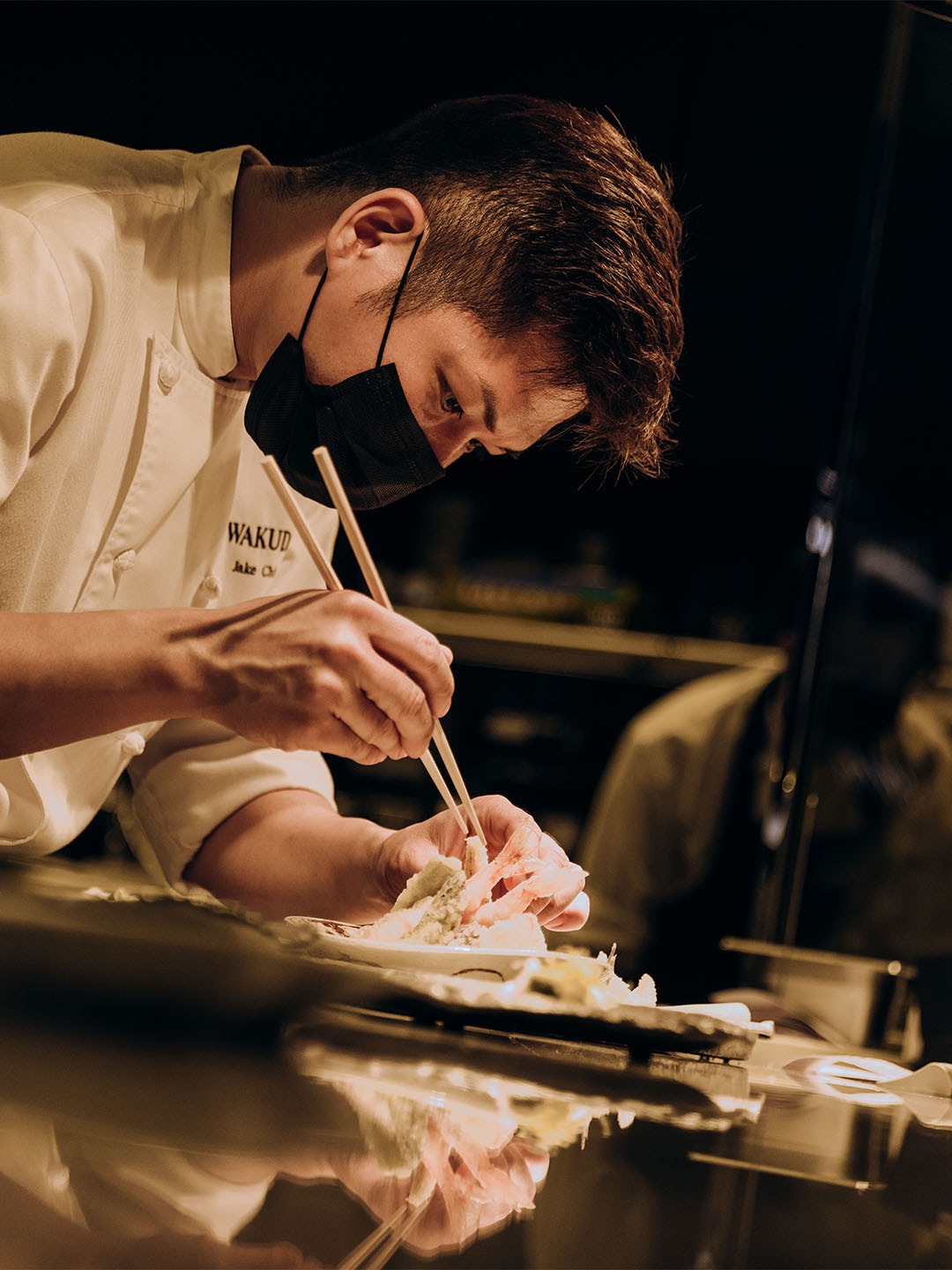 His unique approach marries the precision of Japanese culinary heritage with the finesse of French techniques, creating timeless and contemporary flavours. From the ingredients to the presentation, every detail of the omakase experience at Wakuda is designed to impress even the most discerning guest.