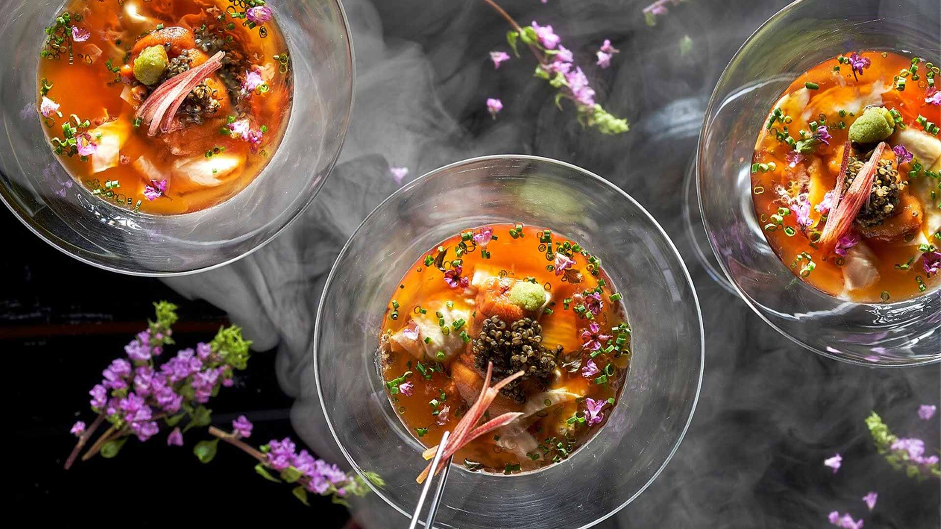 Complement the deep sea’s treasures with earthy matcha flavours, paired with an innovative combination of Umami Strawberry and Oloroso Sherry in their Heavenly Match-a Cocktail.