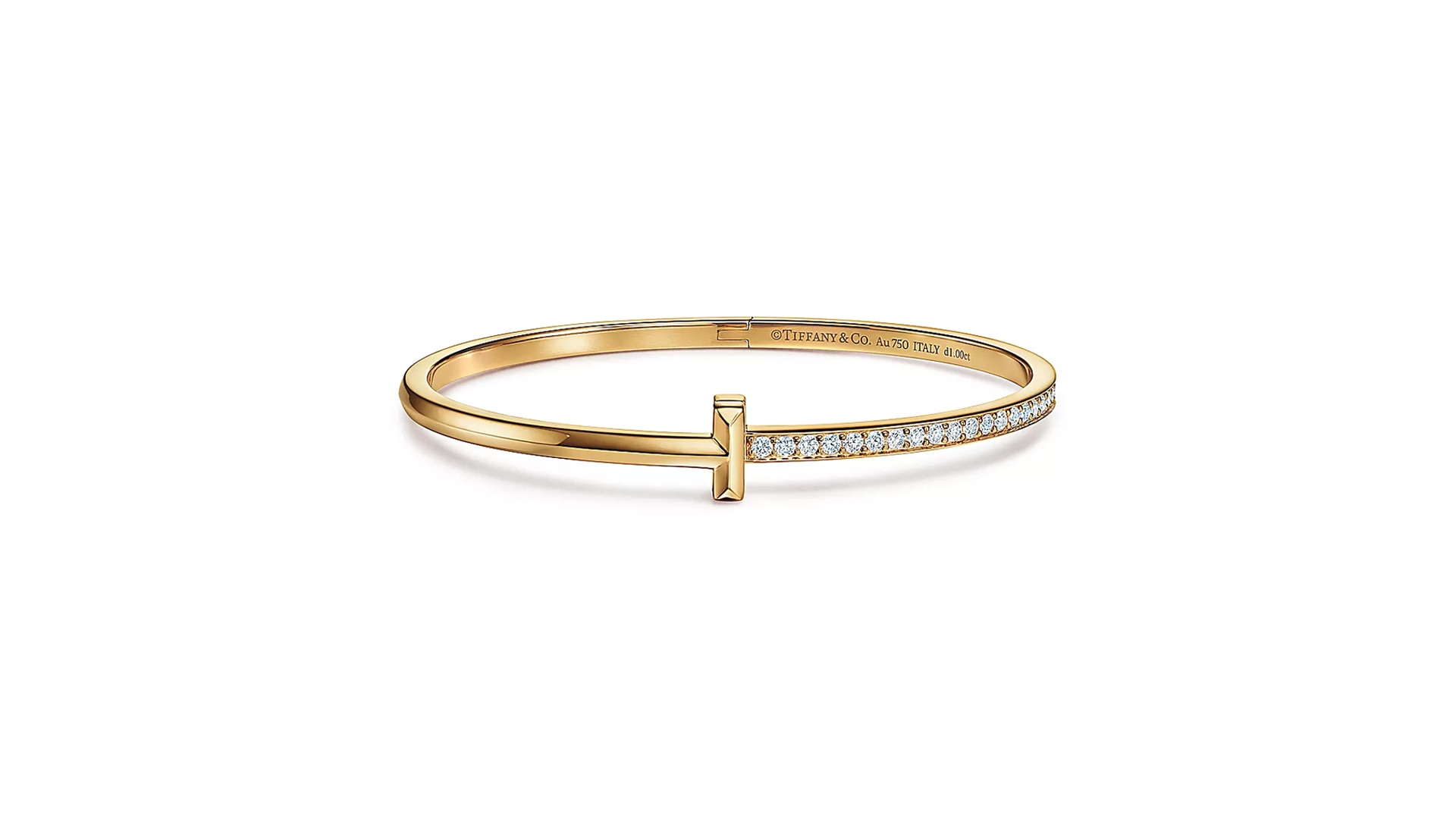 The T1 Narrow Diamond Hinged Bangle from Tiffany & Co.'s collection embodies beauty and elegance that transcends the ordinary. Crafted from 18K gold, the Narrow Diamond Hinged Bangle is a manifestation of grace with scintillating diamonds and its refined profile. Whether worn alone or complemented with other accessories, this bangle is a symbol of enduring love, marking your anniversary with a combination of luxury and enduring style.