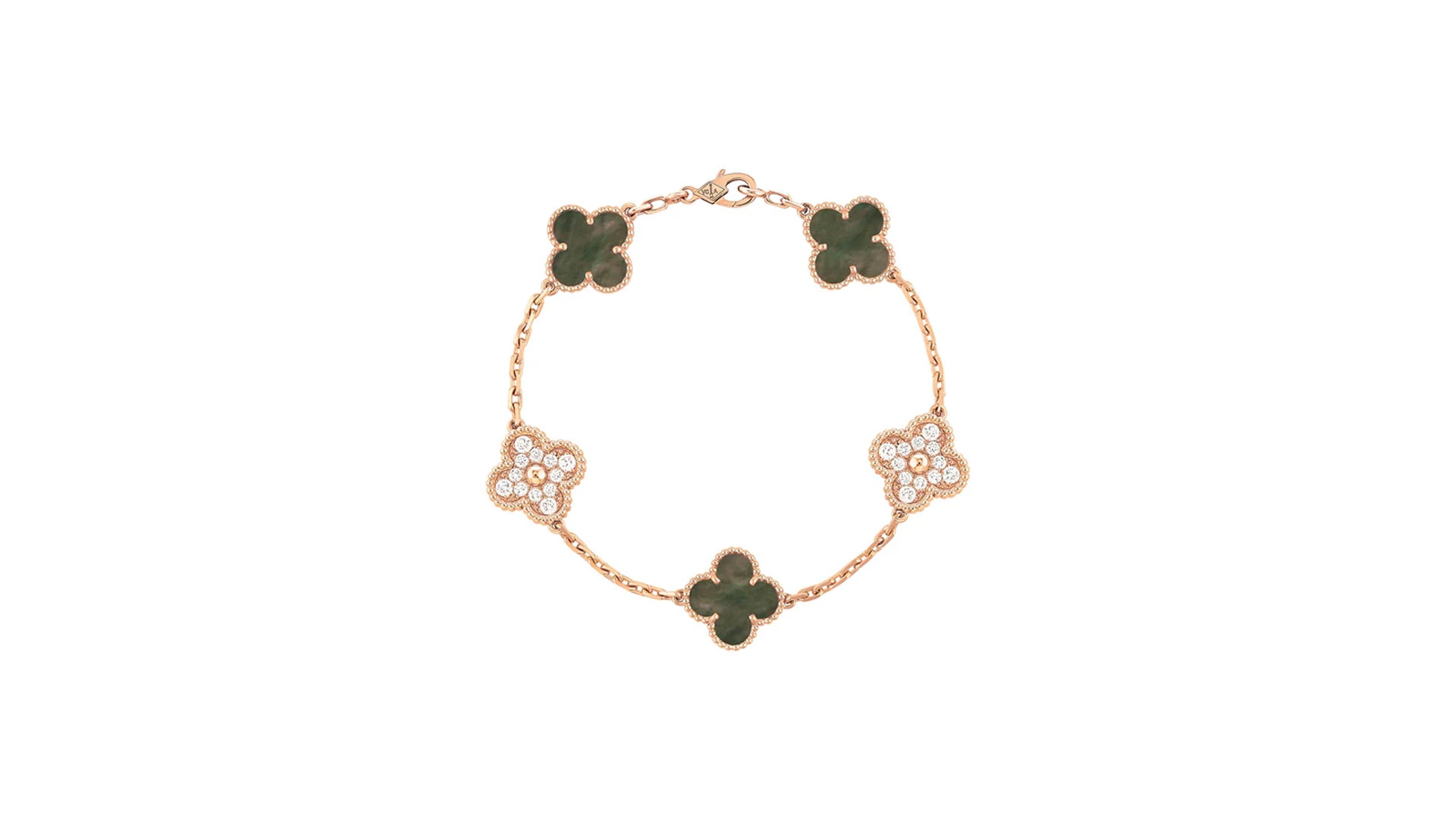 The Vintage Alhambra Bracelet embodies timeless elegance with its signature precious stones bound by gilded beads and a chain of five clovers. Make every day her lucky day with the iconic Van Cleef & Arpels clovers, and adorn her outfit with the dreamy, ethereal touch of the Vintage Alhambra Bracelet for a unique addition to her outfit. With its use of precious metals and rare stones, this bracelet is the anniversary gift for your other half to commemorate your anniversary celebrations.