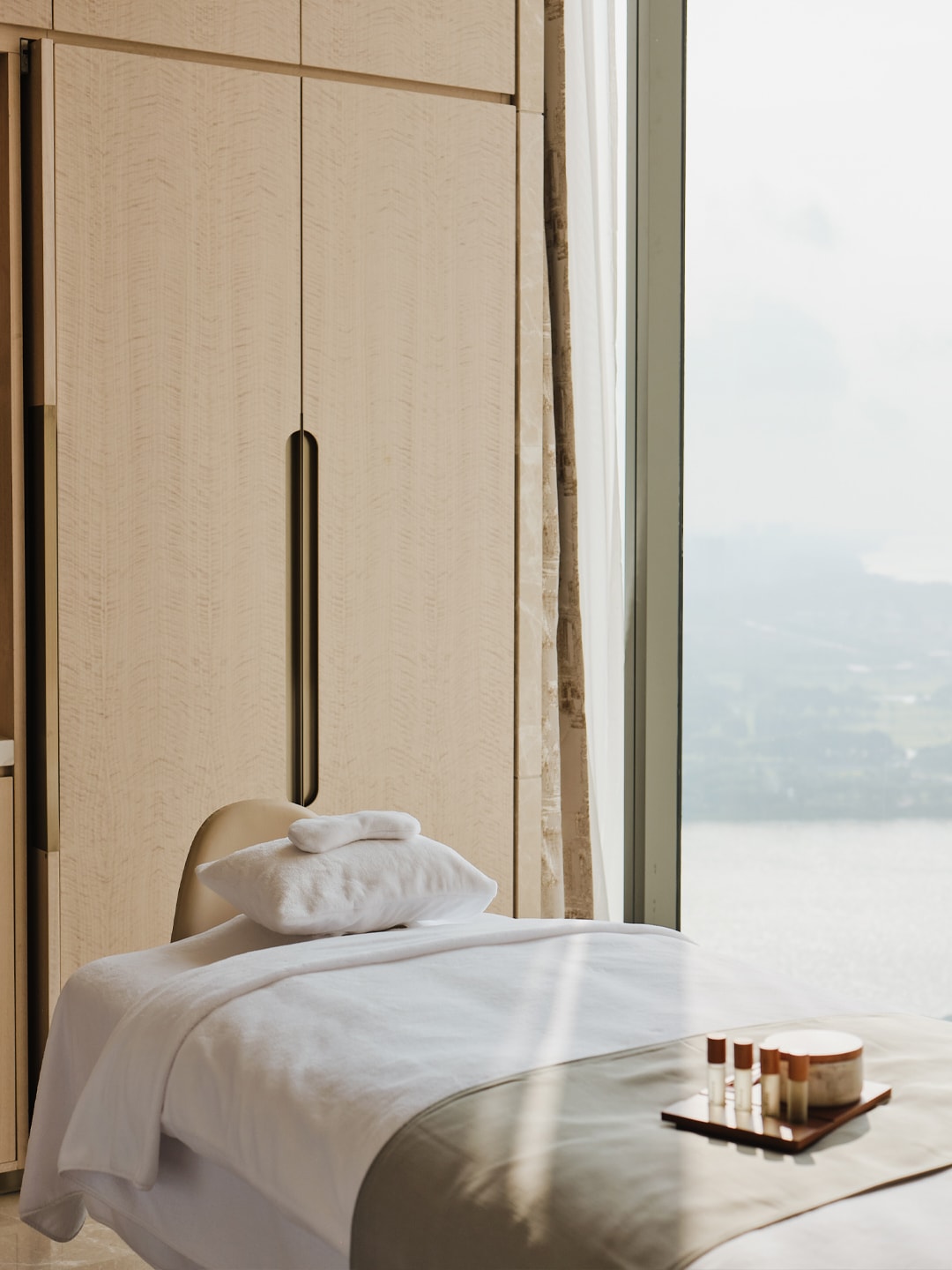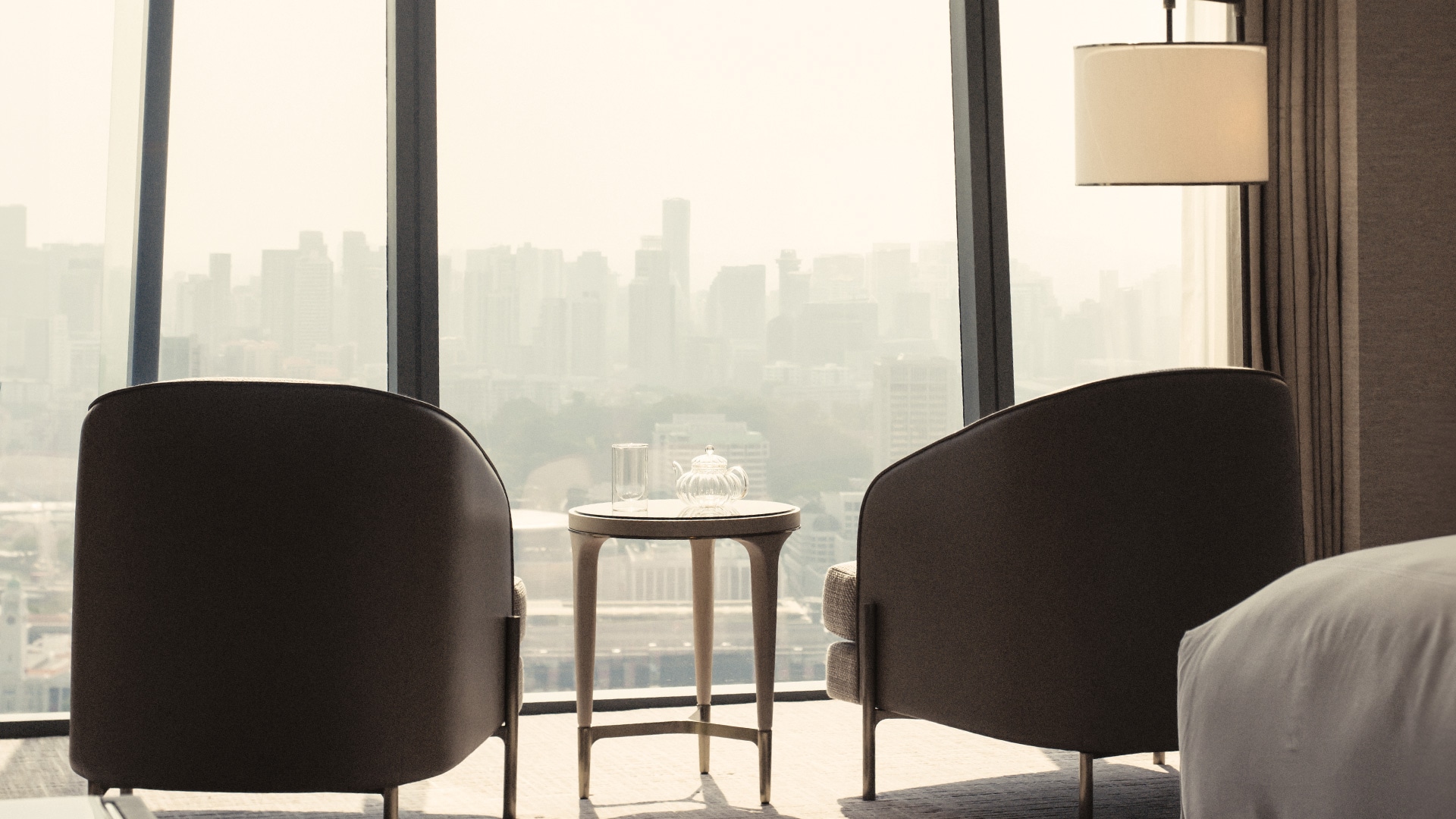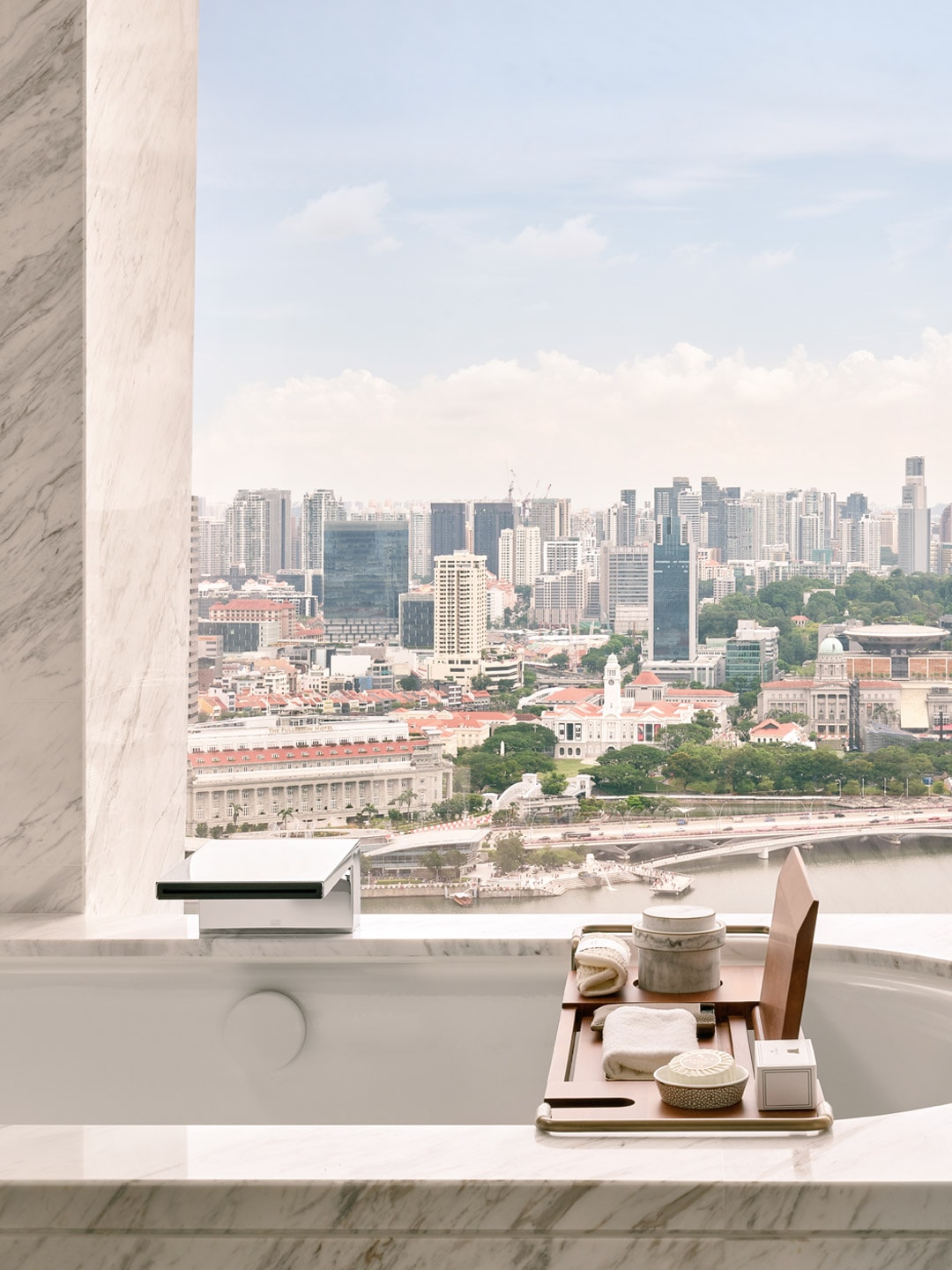 The magnificent foyer, clad in resplendent Italian marble marquetry, sets a refined tone, while original artworks and opulent bespoke furnishings reflect Southeast Asian craftsmanship. Floor-to-ceiling windows showcase superb views of the cityscape and ocean at every turn.