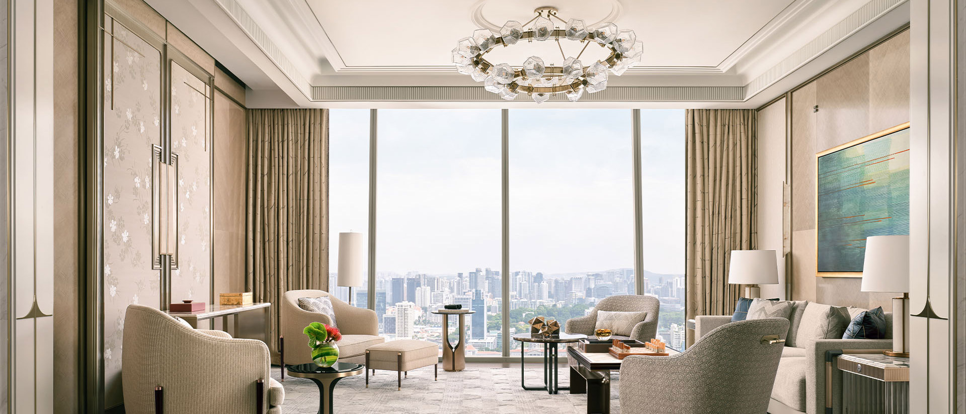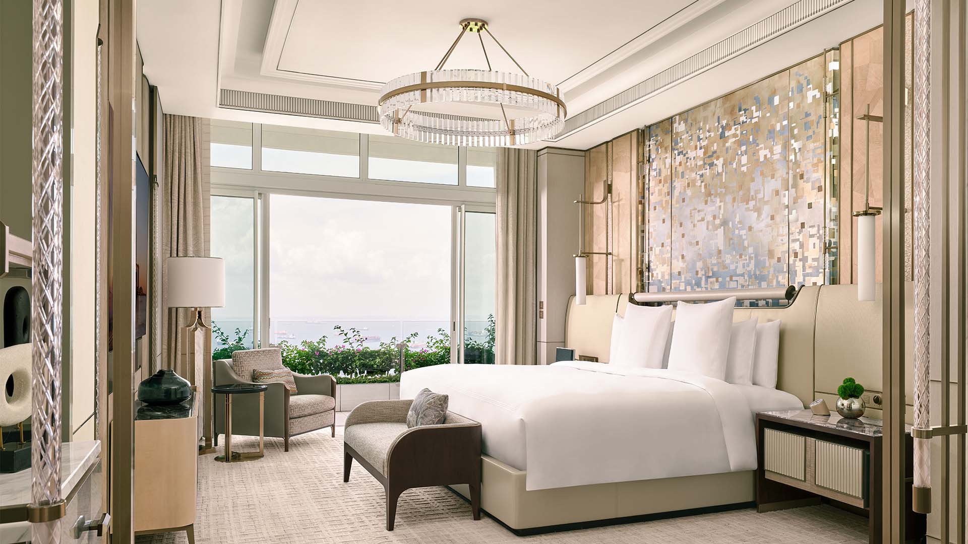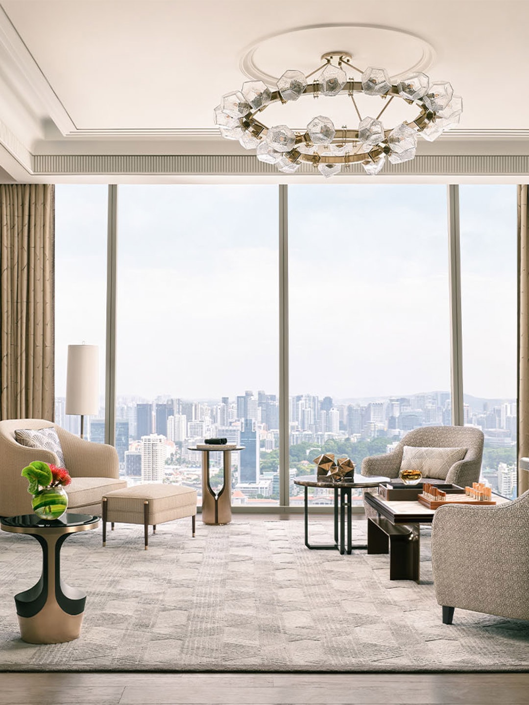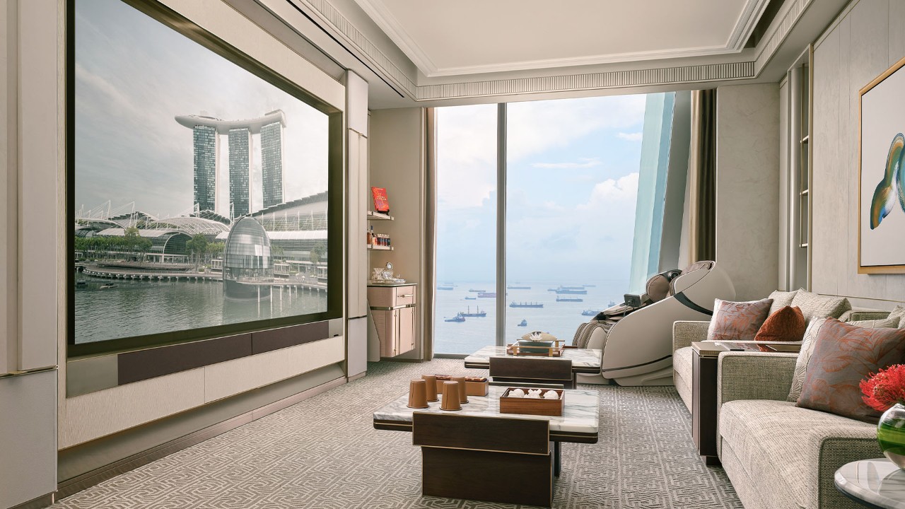 Marina Bay Sands’ most magnificent suite is a palatial residence like no other. With the option of three or four bedrooms, the expansive living areas are designed for entertaining on a grand scale, equipped with a fully stocked kitchen and bar to host extravagant dinner events and parties. Fitted with a private gym, spa facilities, grand piano, standalone humidor and all the trimmings needed for a spectacular stay.