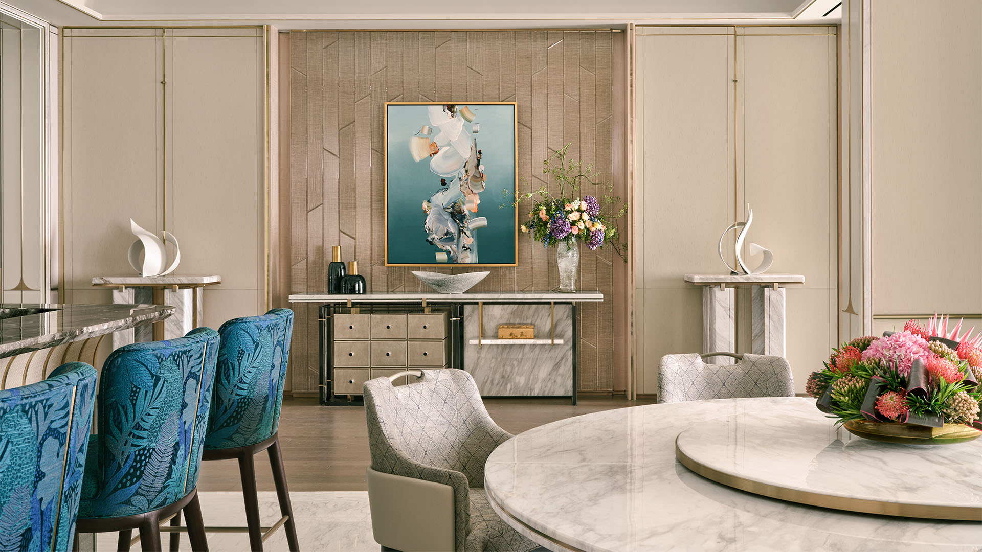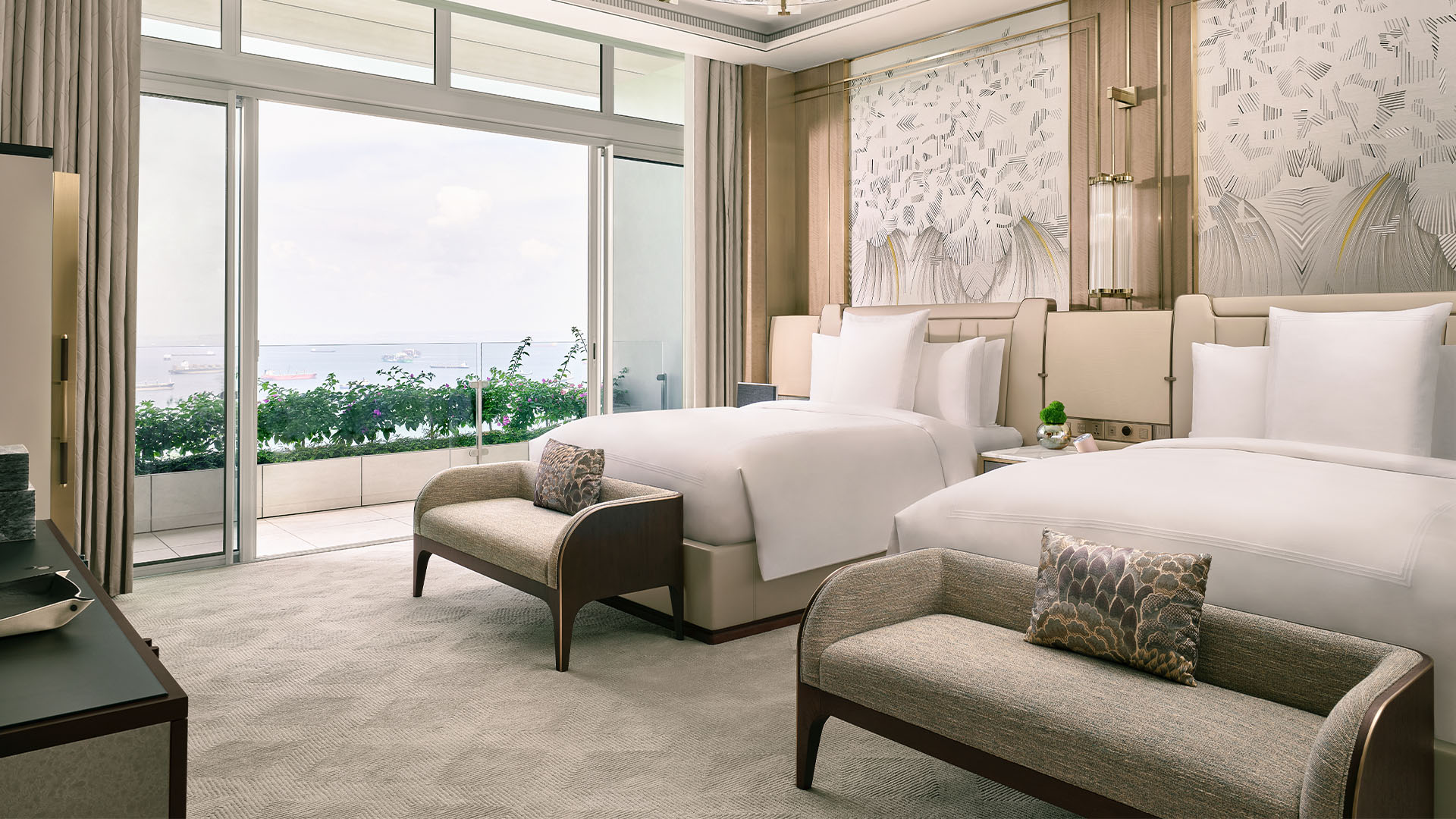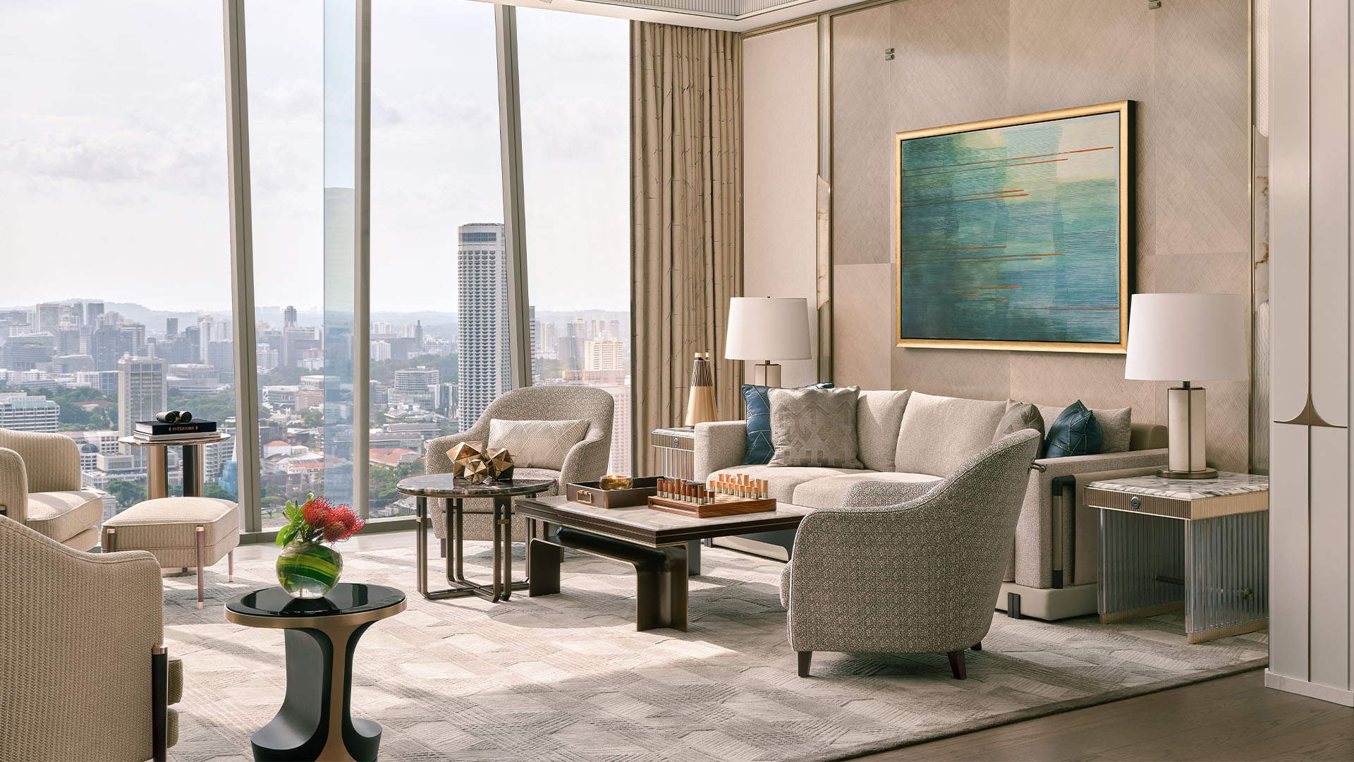Marina Bay Sands’ most magnificent suite is a palatial residence like no other. With the option of three or four bedrooms, the expansive living areas are designed for entertaining on a grand scale, equipped with a fully stocked kitchen and bar to host extravagant dinner events and parties. Fitted with a private gym, spa facilities, grand piano, standalone humidor and all the trimmings needed for a spectacular stay.