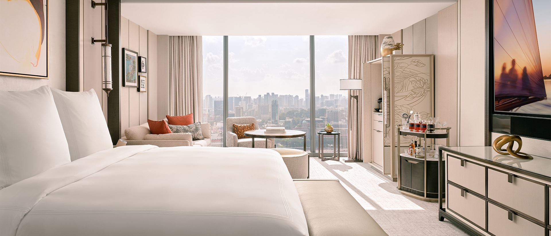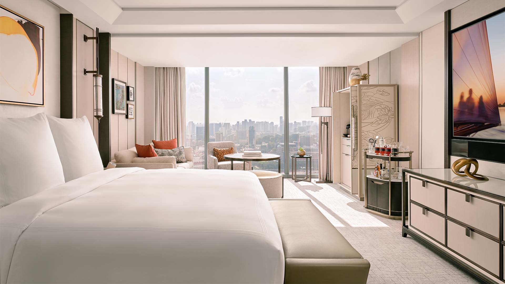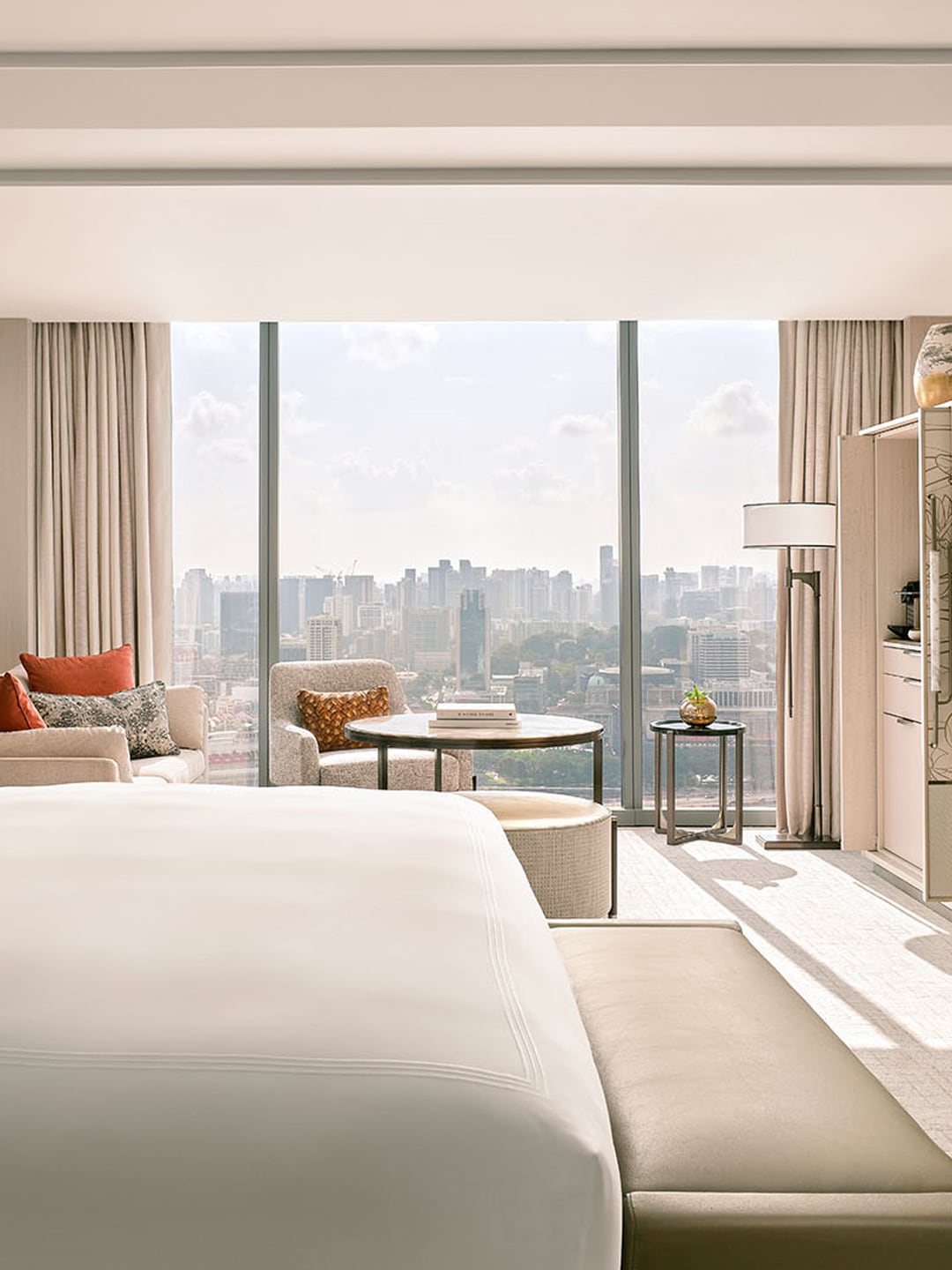 An exquisitely designed and artfully curated haven of calm in the heart of the city. Take a long bath in your expansive bathroom fitted with a concealed TV, and indulge in the generous curation of treasures in the bespoke Armoire.