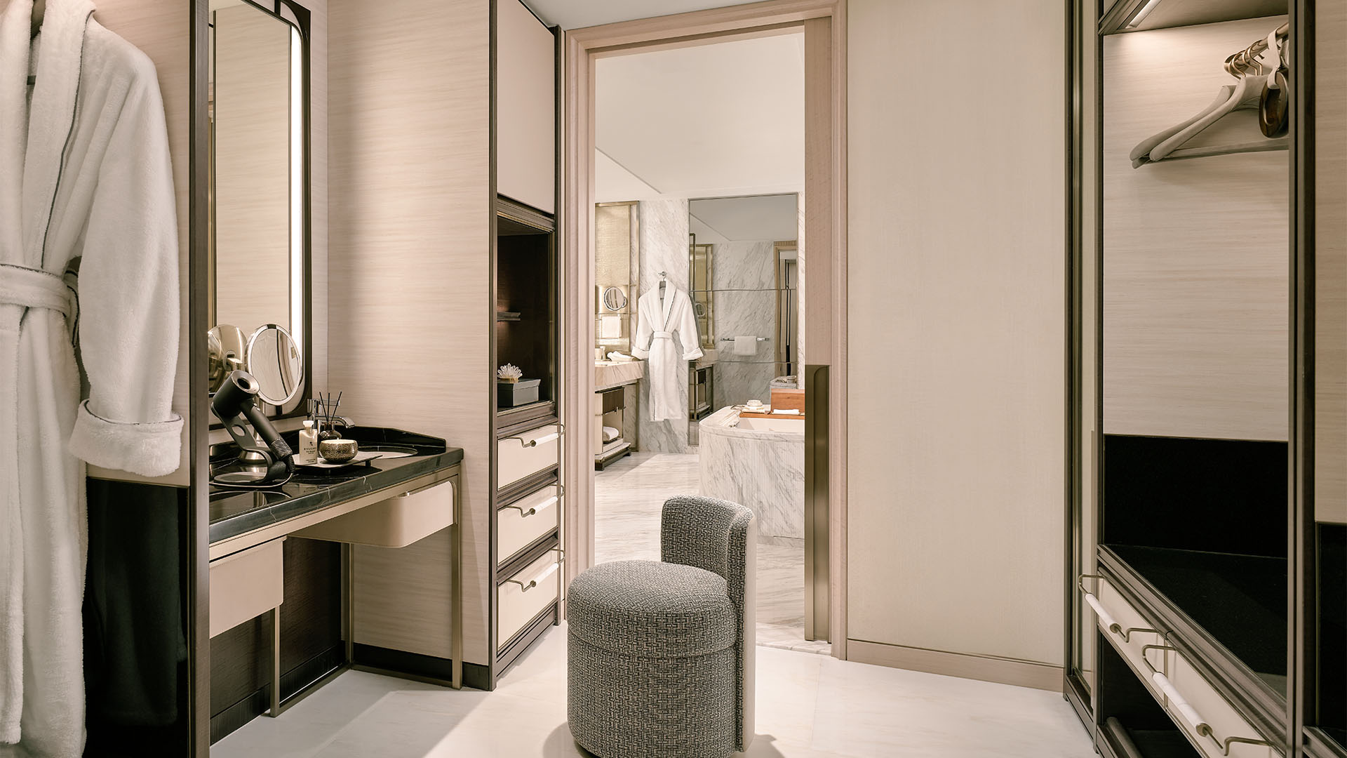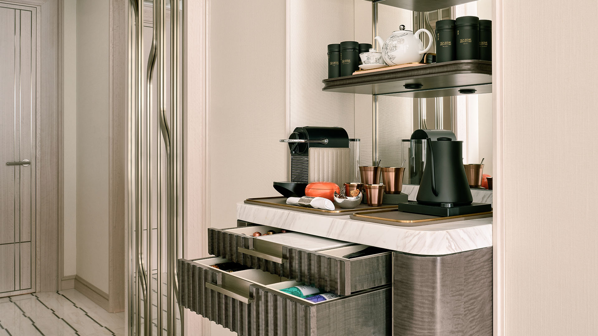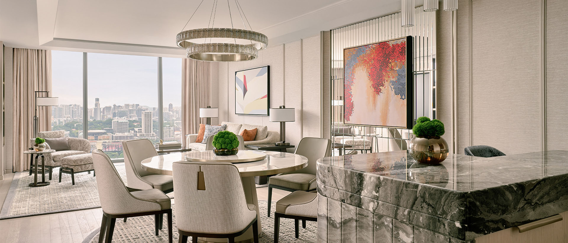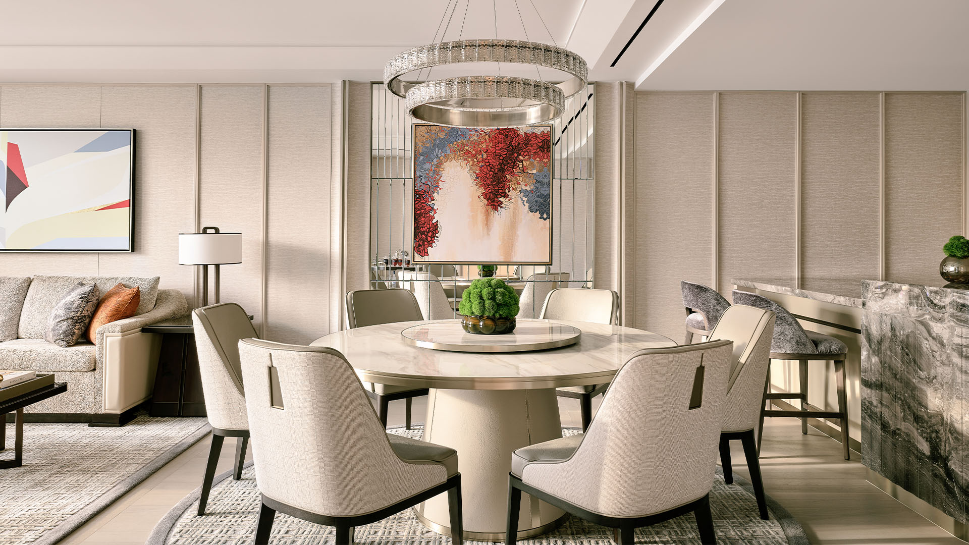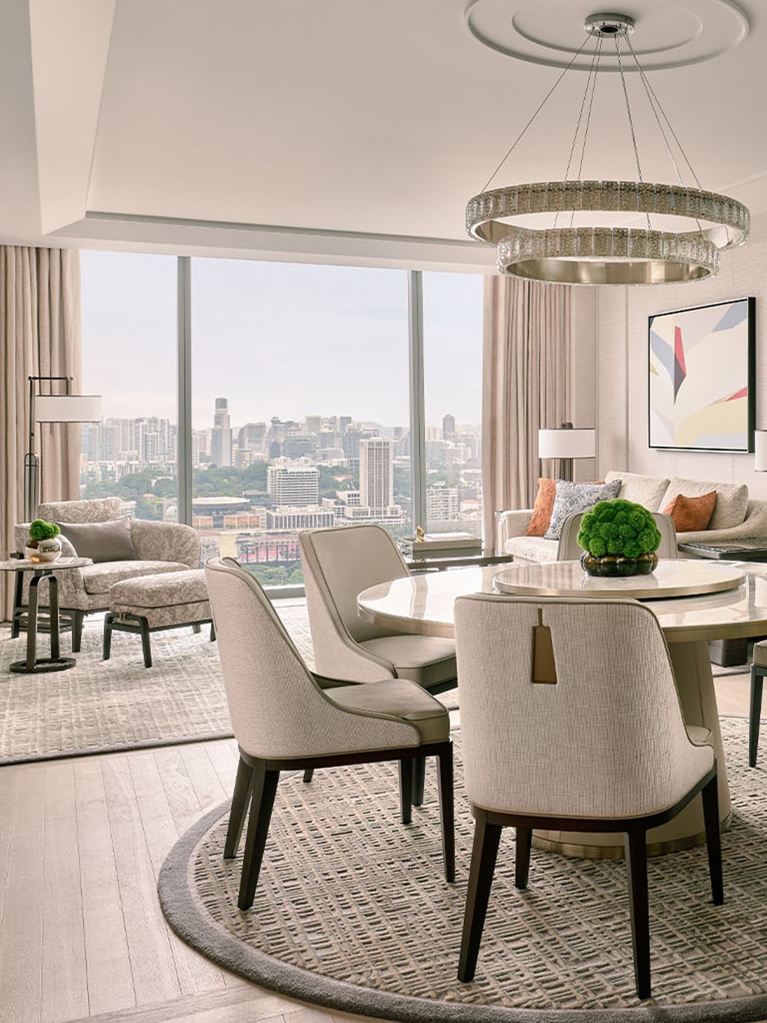 A bespoke urban sanctuary, designed to pamper and lift your senses. Rejuvenate in your expansive bathroom with enhanced shower facilities, and revel in the suite life with dedicated living and dining areas. A specialty night fridge rests at the entrance of the bedroom, stocked with premium mineral waters.