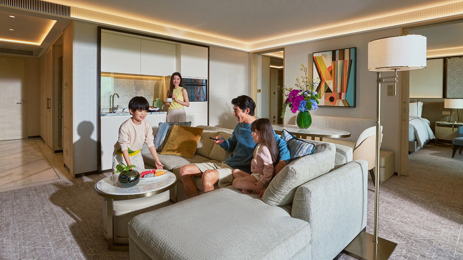 Designed with the whole family’s needs in mind, the Sands Family Suite makes travelling with your little ones a breeze. From easy meals in the spacious, child-friendly kitchenette to seamless entertainment options at The Hideaway and convenient access to essentials at The Pantry. Enjoy quality time together at The Play Den, our sophisticated play and craft space. Or take our exclusive Adventure Pack out for a tour of the city with Rori, a brave little lion plush.