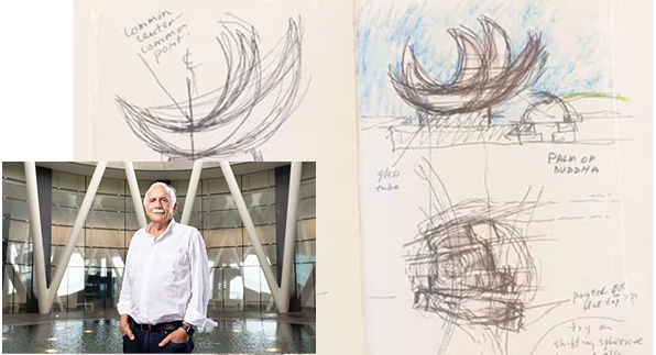 Designed by renowned architect Moshe Safdie, our museum is inspired by the shape of a lotus in full bloom. Each ‘frond’ on the building contains a different gallery, with skylights illuminating the curved interior walls to create a dramatic silhouette on the skyline.