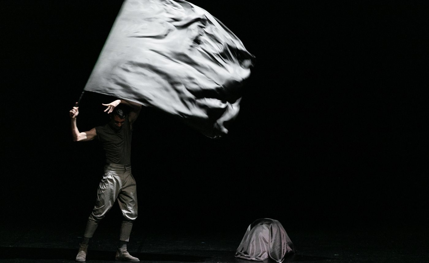 Stripped of traditional insignias, the silver-grey flags wielded by the performers transform into spectral figures, blurring the lines between banners and shrouds. The title, AeReA, derived from the Latin words “ara” (altar) and “aerea” (air), underscores the duality of the flag as an object that has always functioned in principle to express ideas of unity and separation. With sound design by Demetrio Castellucci, AeReA provokes reflection on historical and contemporary notions of power and belonging.