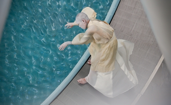 the center trembles is a durational performance by butoh artist XUE sited within ArtScience Museum’s Oculus, the hollow core of the building’s architecture. The intervention creates a context in which participants can bear witness to rhythms of choice, change, and stillness in relation to how one situates the body, or how the body inadvertently situates itself in space.