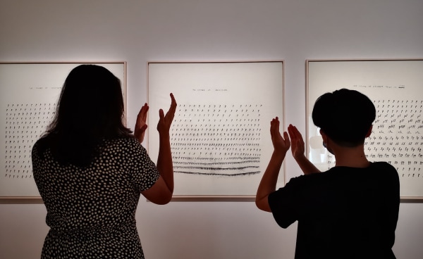 It looks at the way they take up space, and how they interact and process another work of art. By responding, what else do they create in the process? Their afternoon of interventions will exist across four sessions, responding to different exhibits in Orchestral Manoeuvres: See Sound. Feel Sound. Be Sound.