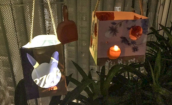 To light up your lantern, use a battery-operated tealight or the flashlight on your smartphone as a light source.