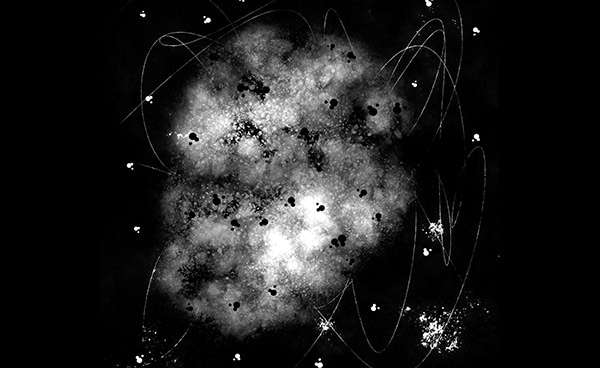 A selection of ten short excerpts from this dubplate were re-recorded and used as the impetus to create the moving images seen within Sonorous Sketches. Led by Zai, the piece visualises the sensuous character of both the wildlife recordings and the turbulent sounds of the worn out dubplate itself, using a combination of both analog and digital mark-making methods. The latter is explored through software-based frame-by-frame animation, and the former is manifested through the imaginative hands of artist and filmmaker Rei Hayama, using 35mm film.