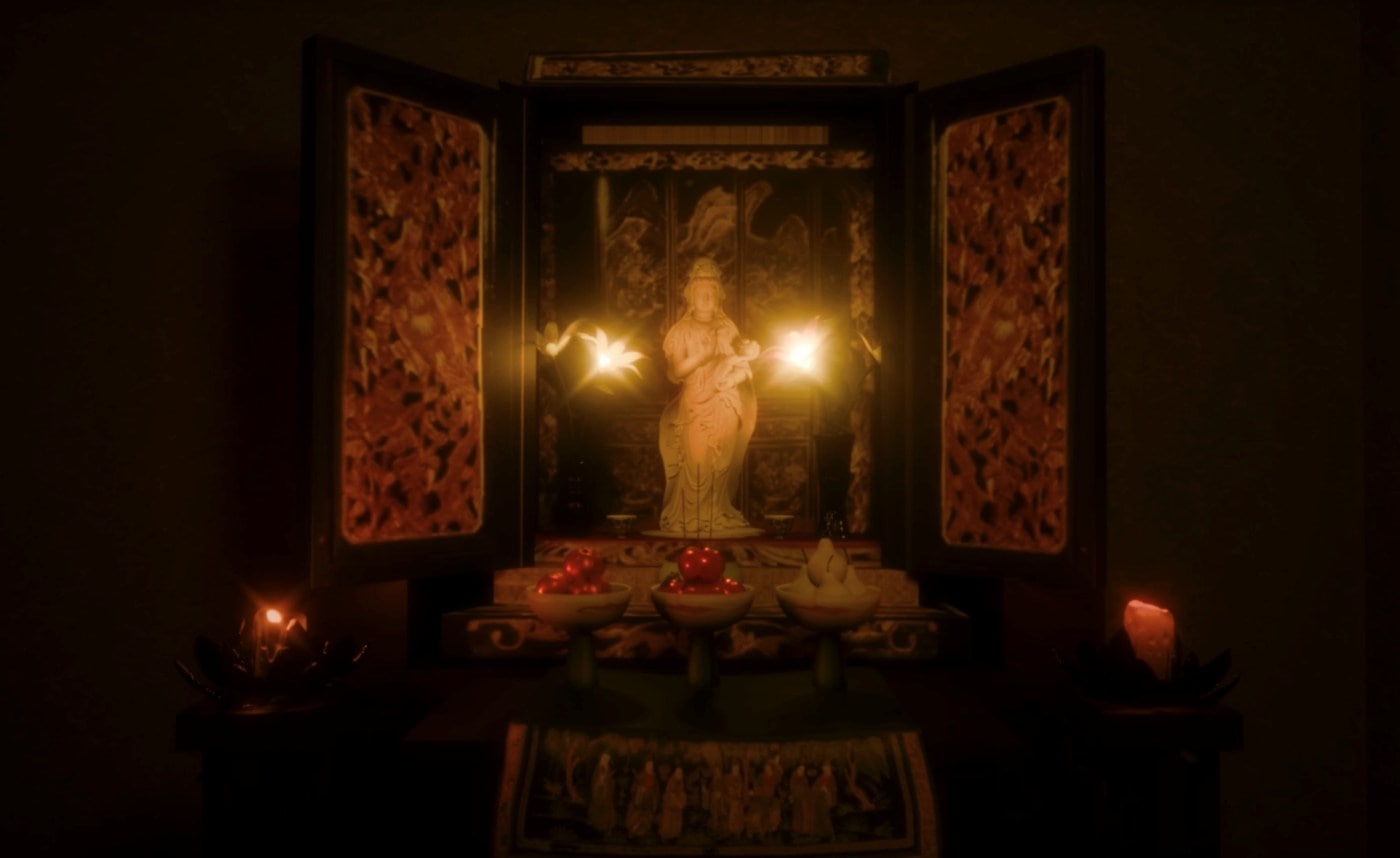 Existing between the domains of architectural, technological and spiritual mediums, ‘spaces as traces’ features found footage, Teo’s body of archival material concerns with Singapore’s architecture and Taoist religious rituals, as well as three-dimensional rendered animation of deities in an imagined science fiction of Chinese mythology. Here, the I Ching engages in a dialogue with artificial intelligence and architectural elements. Spiritual language becomes digital language.