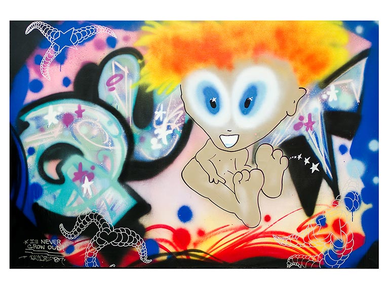 Crash is known for his classical graffiti that is tinged with pop art references. After initial success early on in the 1980s, specifically at Fashion Moda Gallery, New York, Crash (aka John Matos) went on to have a successful career exhibiting in galleries all over the world. His style drew inspiration form the visual environment in which he grew up – America of the 1960s and 1970s – with the omnipresent language of advertising and the birth of Pop Art.