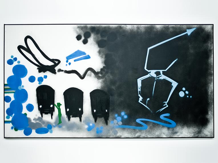 Spray paint and marker on canvas
