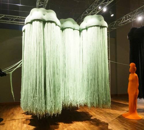 A Secret Garden is a site-specific installation where wool is used to depict a rainforest. Wool allows Yeo to materialise natural phenomena, such as rain, shadow and night. The use of this material creates a warm, soft and alluring ‘garden’, which visitors are invited to physically enter. At once surreal, elegiac, and poetic, A Secret Garden is emblematic of Yeo’s sculptural sensibility, which is both realistic and imaginary at the same time.