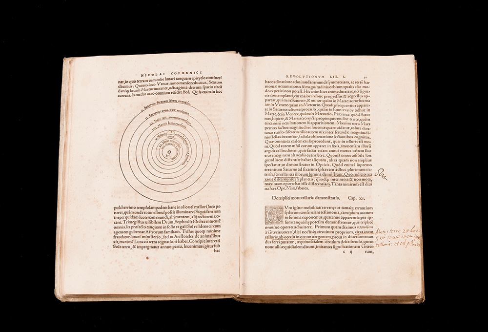 This is one of the most important books in scientific history. In it, Polish astronomer, Nicolaus Copernicus (1473–1543) set out an alternative model of the universe to Claudius Ptolemy's geocentric system, which had been widely accepted since ancient times. He placed the Sun at the centre of the universe and argued that the Earth moved across the heavens as one of the planets. Copernicus anticipated his ideas would be controversial and waited more than 30 years to publish this book. His ideas were indeed revolutionary. His ‘heliocentric model’ was later developed further by the discovery of elliptical orbits by Johannes Kepler and the law of universal gravitation by Isaac Newton.