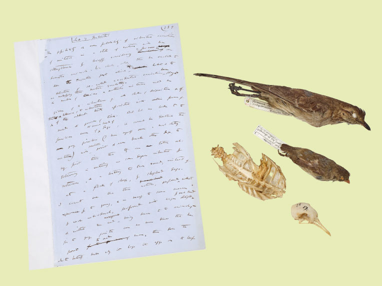 On display in this gallery is a hand-written page from On the Origin of Species by Charles Darwin, one of the most influential books ever written.