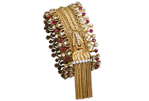 Van Cleef & Arpels’ use of Couture motifs and materials is a discrete homage to the city of its origins, Paris: the capital of fashion and elegance. Thanks to the craftsmanship of the Maison’s workshops, fabrics are transformed into jewellery, while ribbons and lace are embellished by gold weave and precious stones.