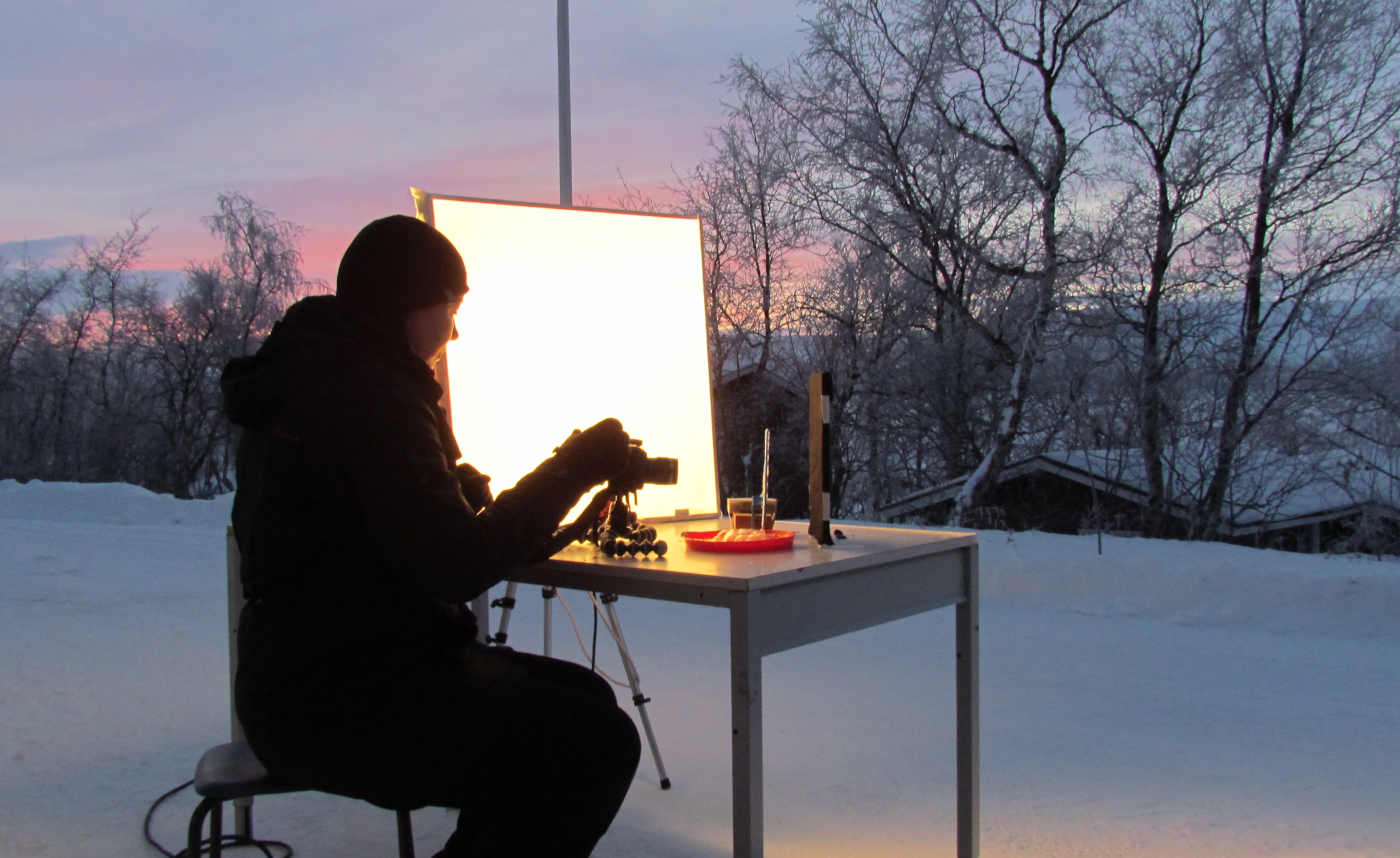 The film was created as part of the Ars BioArctica residency at the Kilpisjärvi Biological Research Station in the most northern part of Finland, where temperatures range from -6 to -25 degrees Celsius. This sub-zero landscape provided an ideal and unique environment for Assmann and Strijbos to explore the aesthetics behind the physical transmutation of matter at its extreme, and the exact moment of change from a liquid to solid state of a soap film.