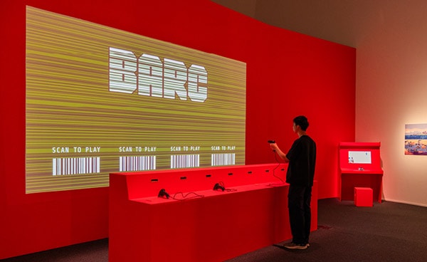 The projects in this gallery carry that spirit into a Southeast Asian context. Debbie Ding’s New Village reconstructs a Malaysian town from her father’s memories, transforming personal and postcolonial history into an explorable virtual space. BARC, by the Interactive Materials Lab, reimagines the arcade shooter through barcode scanners and receipt printers, inviting collaboration and playful resistance to standard game mechanics.