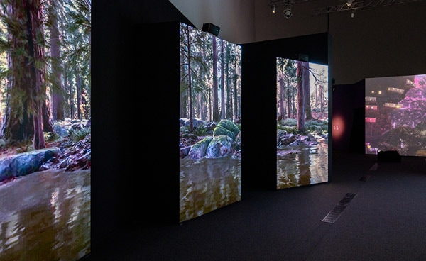 Though lush and verdant, the forest that greets visitors is entirely synthetic, an intentional gesture that underscores the exhibition’s central tension between nature and artifice. By conjuring a landscape that is both evocative and unreal, the gallery invites reflection on how memory and imagination shape our understanding of the natural world. This fabricated ecology becomes a metaphor for the futures we construct: rooted in tradition, yet mediated by technology and design.