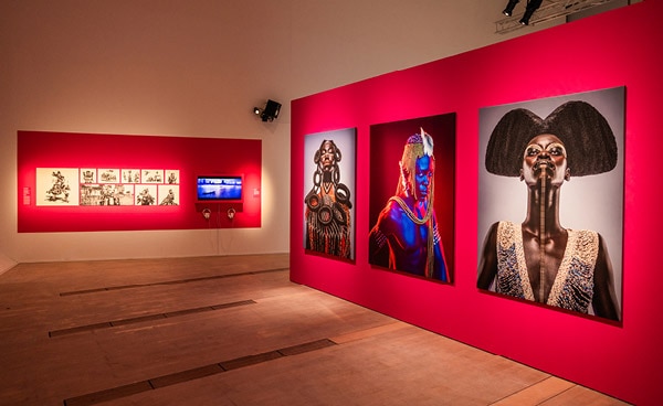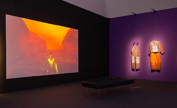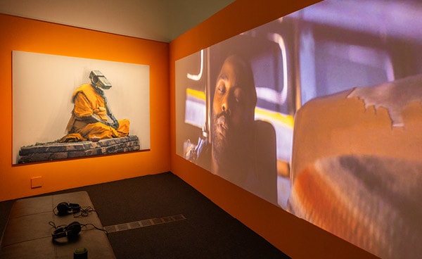 That radical cosmology reverberates through the works in this gallery, from Osborne Macharia’s photographic portraits and Serwah Attafuah’s cybernetic warriors—who merge Ghanaian heritage with futuristic aesthetics—to Shiro Fujioka’s film of an interdimensional tribe that uses sound to move through time, space, and Black futures.