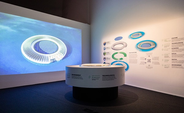 The exhibition reflects a distinctly Singaporean approach to the future, one shaped by long-term thinking, environmental pragmatism, and an ethic of collective responsibility. In contrast to the dystopian tone common in Western popular culture, Singapore treats the future as something to be designed, debated, and actively constructed. This sensibility is woven through the exhibition’s architecture, design, and art—from WOHA’s biodiverse vertical cities to Pomeroy Studio’s floating farms.