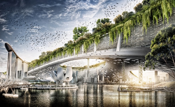 Its skyline has been featured in science fiction media, from Equals (2015) to Westworld (2016–2022), with the city's vertical gardens and living architecture now closely associated with visions of the future.