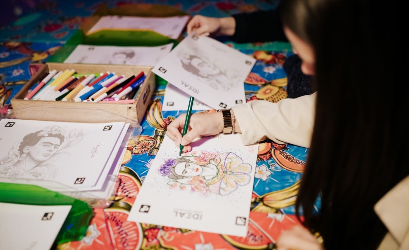 Colour your own Frida portrait and take part in the decoration of the Pulquería La Rosita. This technological and creative experience combines artificial intelligence and digital art, making it interactive for the young, and young at heart!