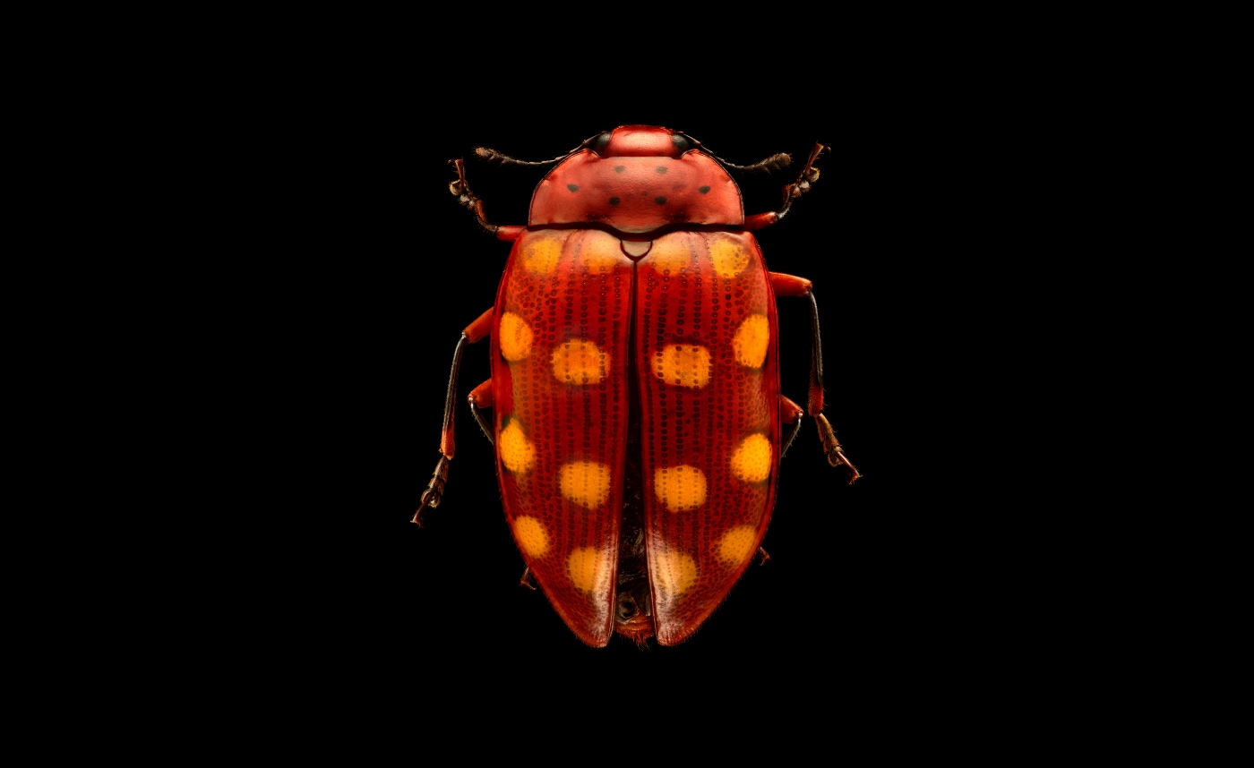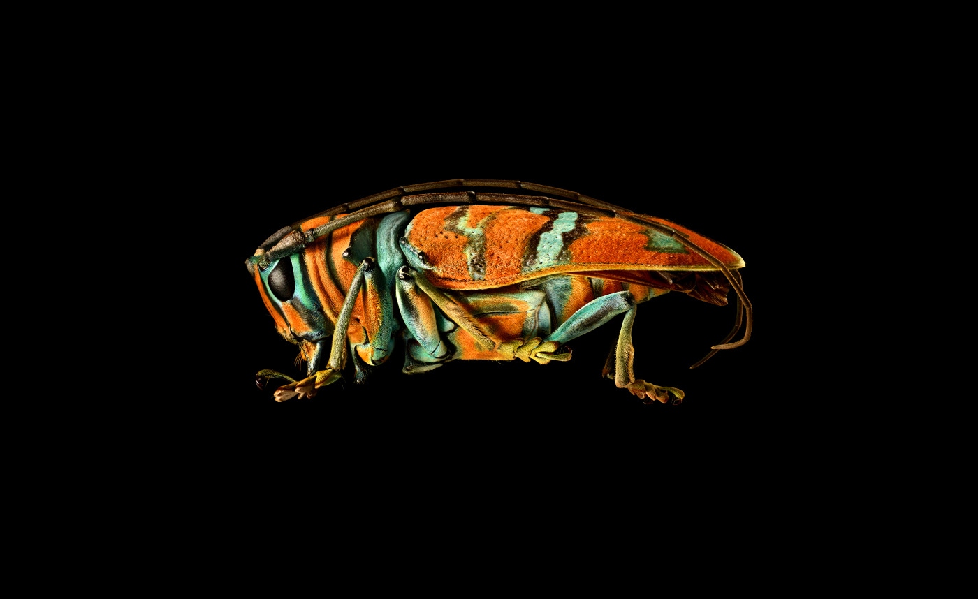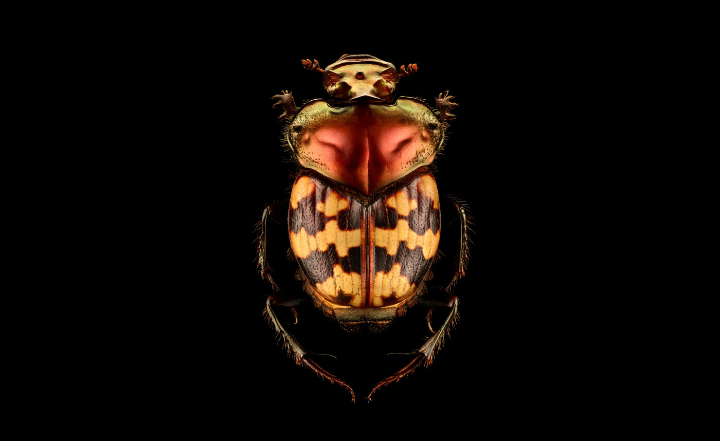 Once magnified the secret to the spectacular patterning of this beetle is revealed—a covering of extremely fine pigmented scales similar to those of butterflies and moths.
