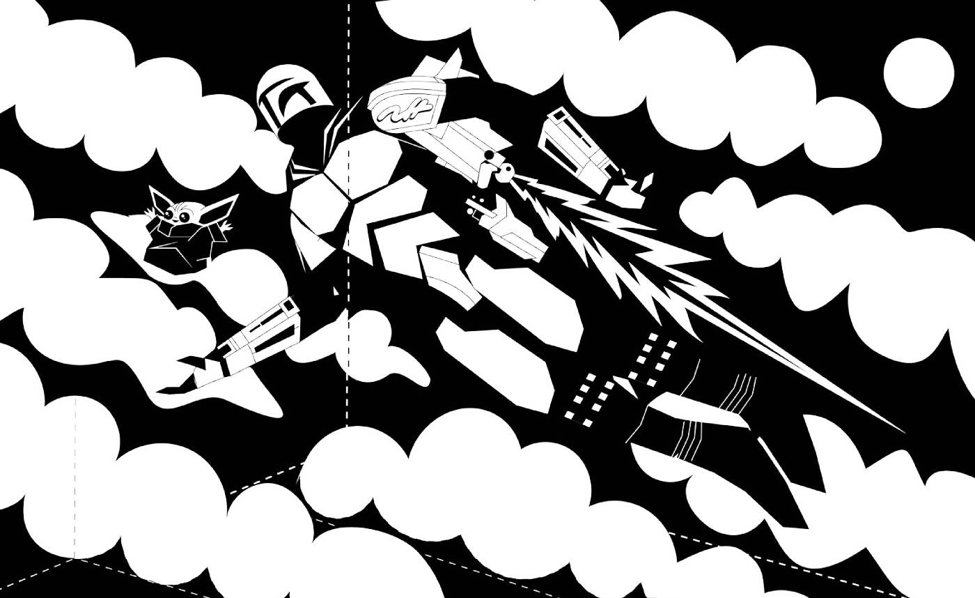 This collaboration represents both creatives’ responses to street culture. The works of soph O suggest a new approach to graffiti by collaging materials such as wood and paper together in abstract forms. Melson’s work highlights how sneakers and streetwear tend to be perceived as a ‘boy’s club’ and focuses instead on strong female characters.