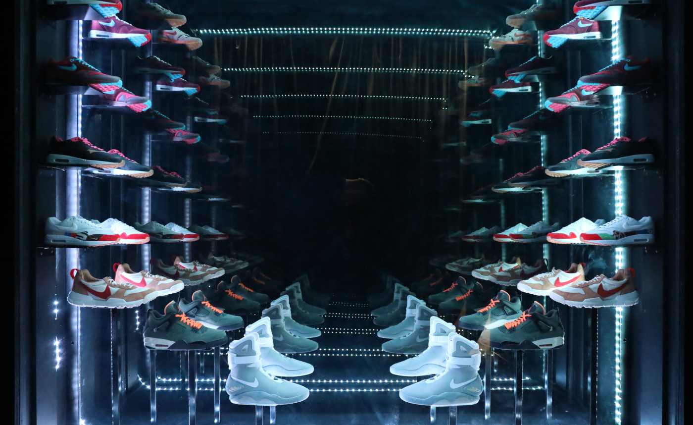 Looking to the past, an interactive mural features six famous personalities wearing iconic sneakers—with each representing different subcultures.