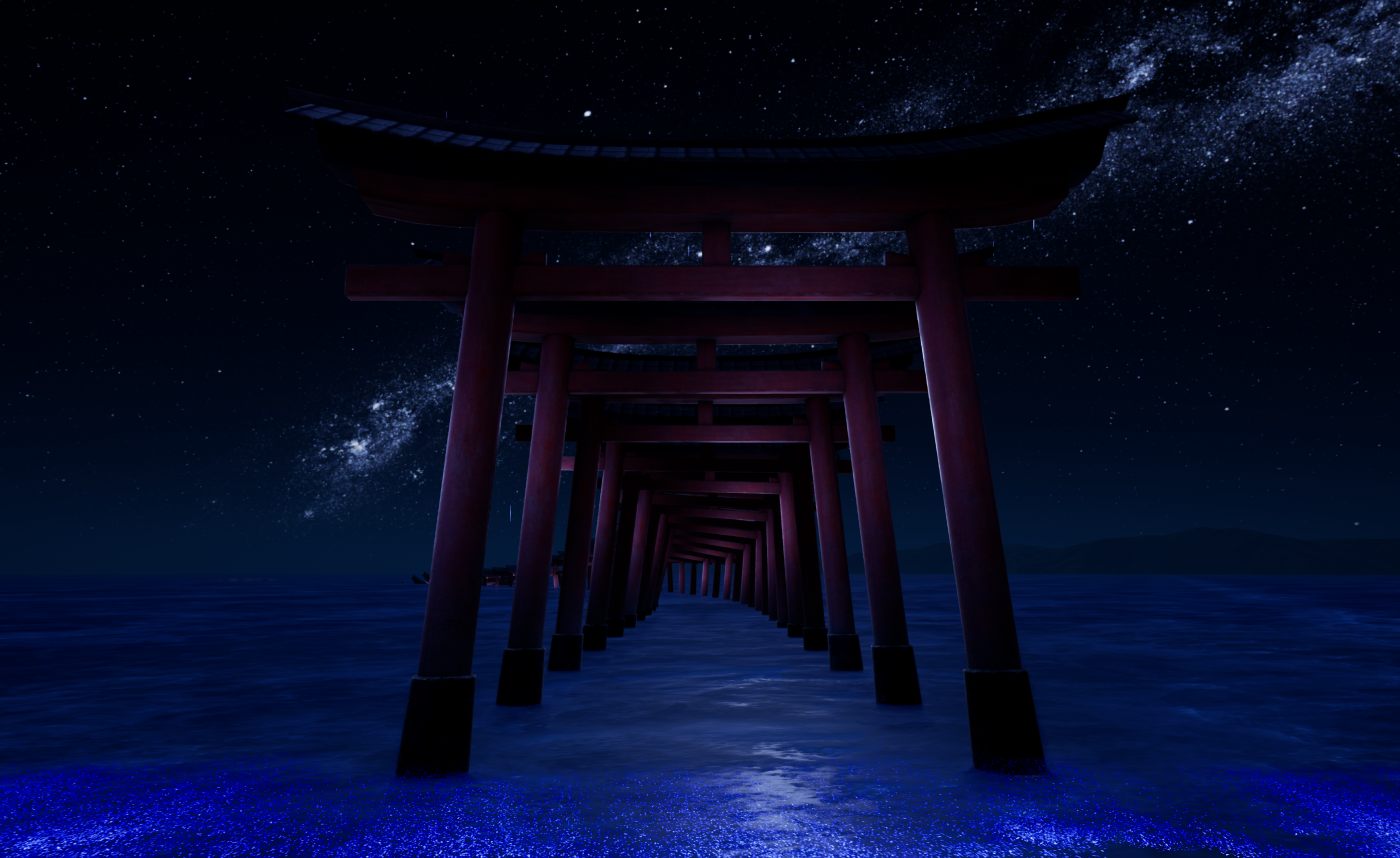 One of Japan’s most fascinating myths, Starry Sand Beach charts the legend of Taketomi Island and the captivating origins of the star-shaped sand species called foraminifera. A riveting tale beginning with the marriage of the Southern Cross Star and the Polar Star and the fate of their children – thousands of tiny stars that plummet into the Okinawa Sea – this immersive experience takes you on a spellbinding life journey of a grain of sand; snaking past treacherous mythical sea serpents, ambling sea turtles and the slowly morphing depths of time and space where unknown wonders reside.
