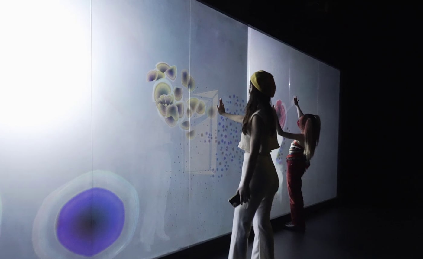 The installation features an interactive 'wall' with two opposing sides to explore. Be transported into an unfamiliar environment where the wall is the only channel of connection and communication to other spaces and time. With a soundscape inspired by KOJIMA PRODUCTIONS' latest game, DEATH STRANDING, the wall appears to come alive with cells and particles that merge in mesmerising formations, reacting to touch and the proximity of those in the space. Over time, the visual record of this cosmic interplay, manifested on the wall, will slowly fade from view.